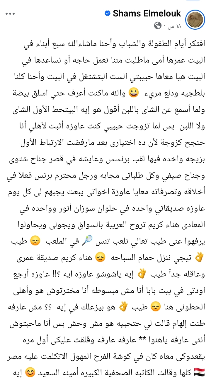 واسترجعت شمس البارودي عبر حسابها على فيسبوك "