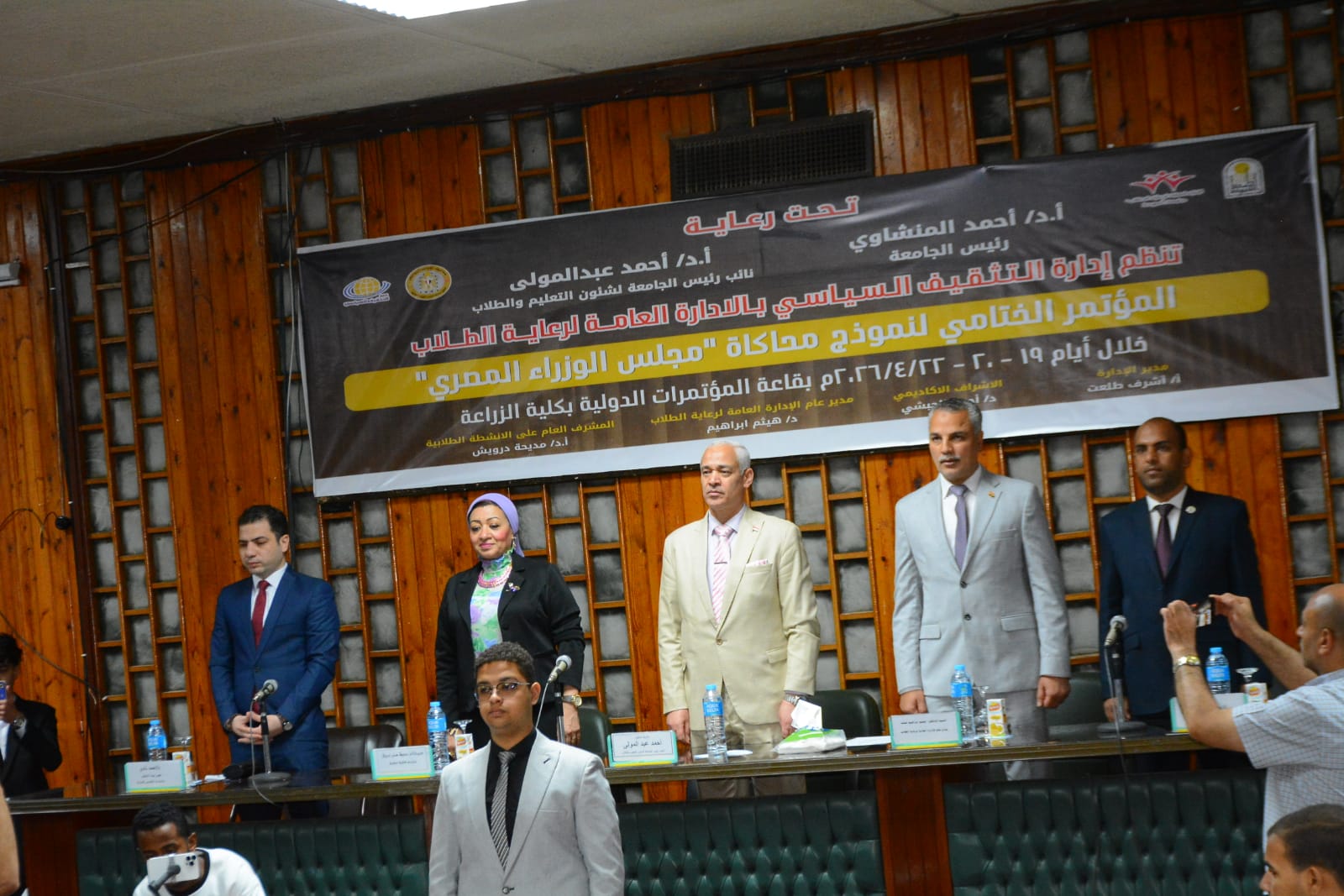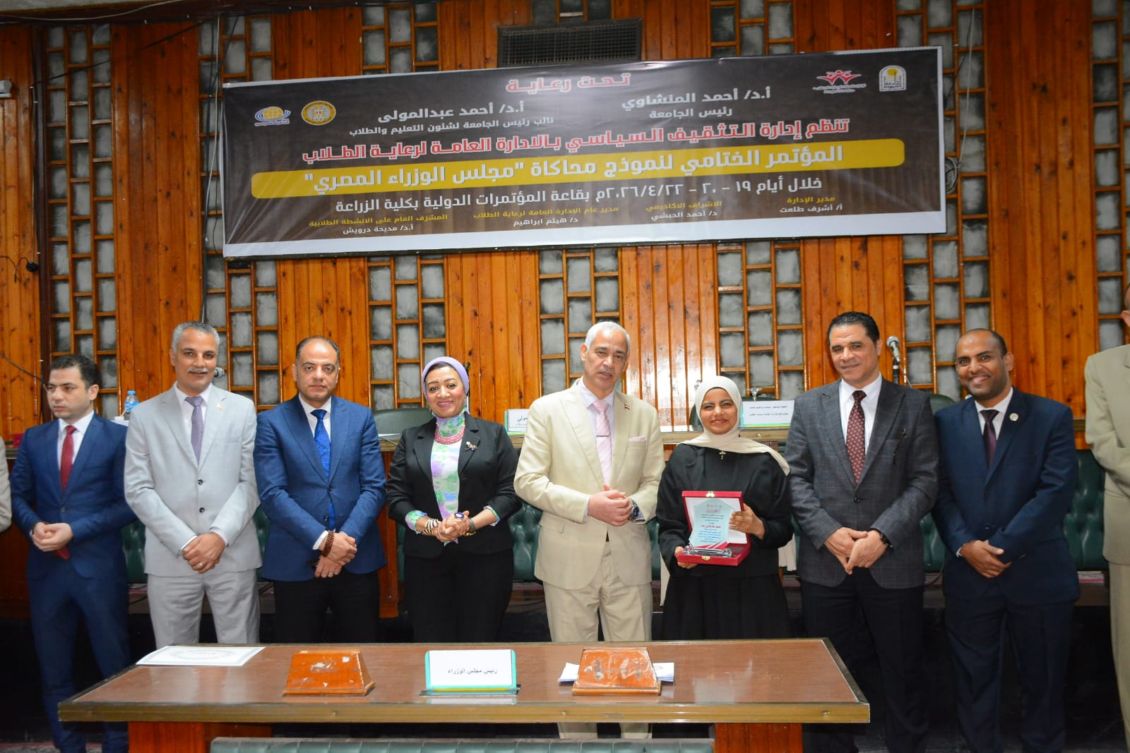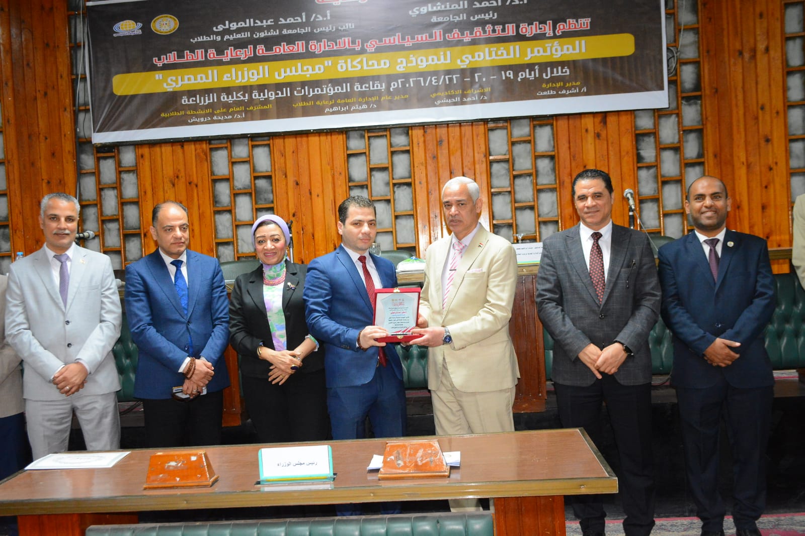 شهدت جامعة أسيوط، انعقاد المؤتمر الختامي لنموذج محاكاة مجلس الوزراء المصري، وذلك بقاعة المؤتمرات الكبرى بكلية الزراعة، تحت رعاية الدكتور أحمد المنشاوي رئيس الجامعة، وإشراف الدكتور أحمد عبد المولى نائب رئيس الجامعة لشئون التعليم والطلاب.