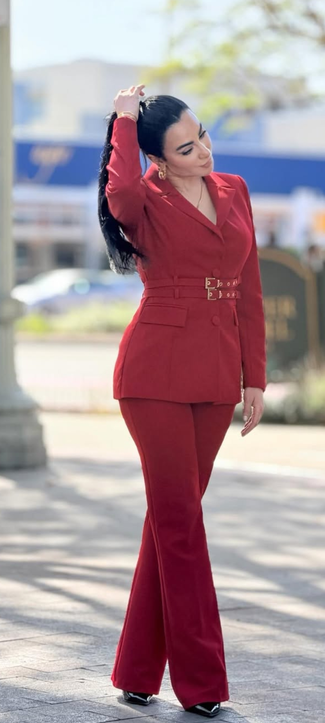 كما اختارت ميرهان حسين ، تسريحة ذيل الحصان لشعرها الأسود الطويل لتتناسب مع ظهورها الجذاب.