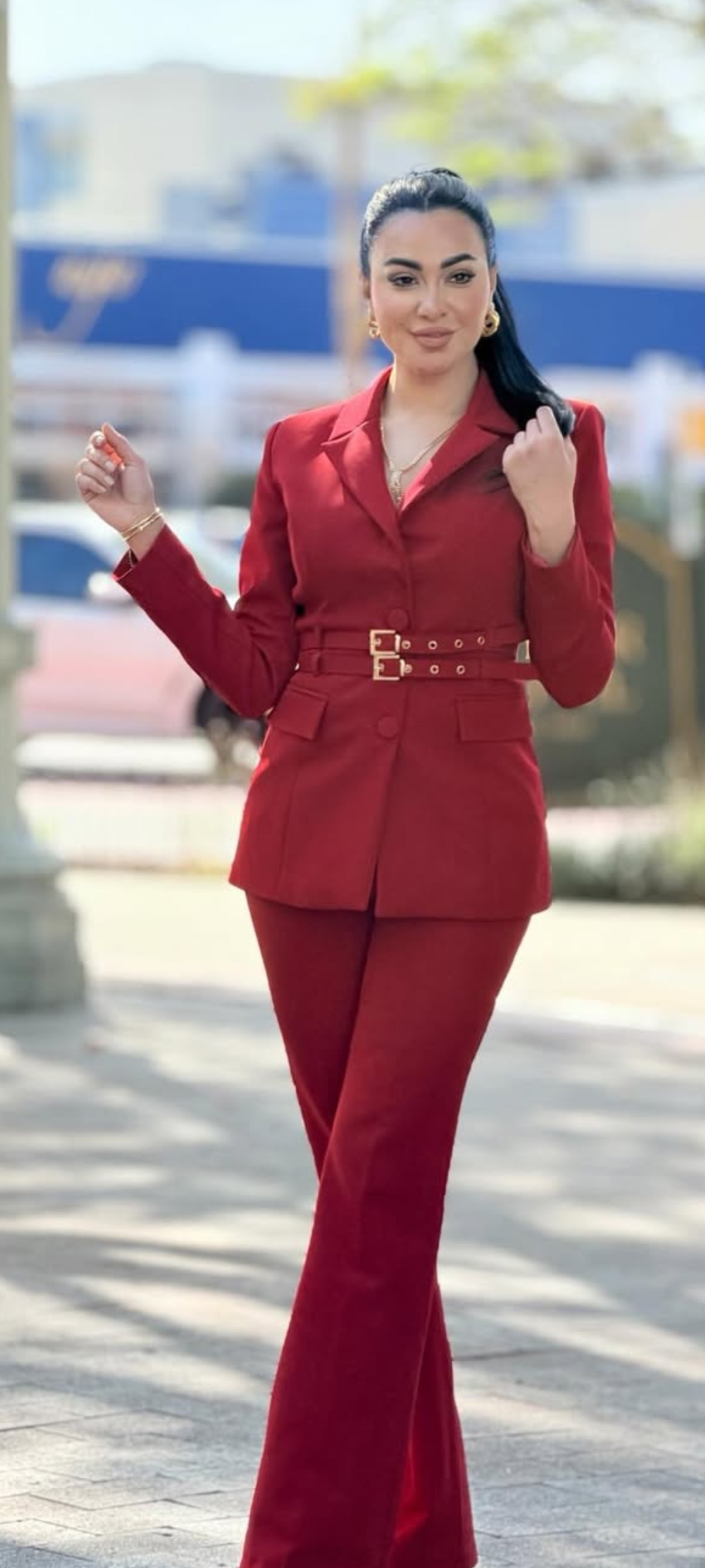 وتألقت ميرهان حسين، مرتدية سوت باللون الأحمر ، وجاء الجاكيت بتصميم بسيط وناعم ليكشف عن جمالها ورشاقتها.