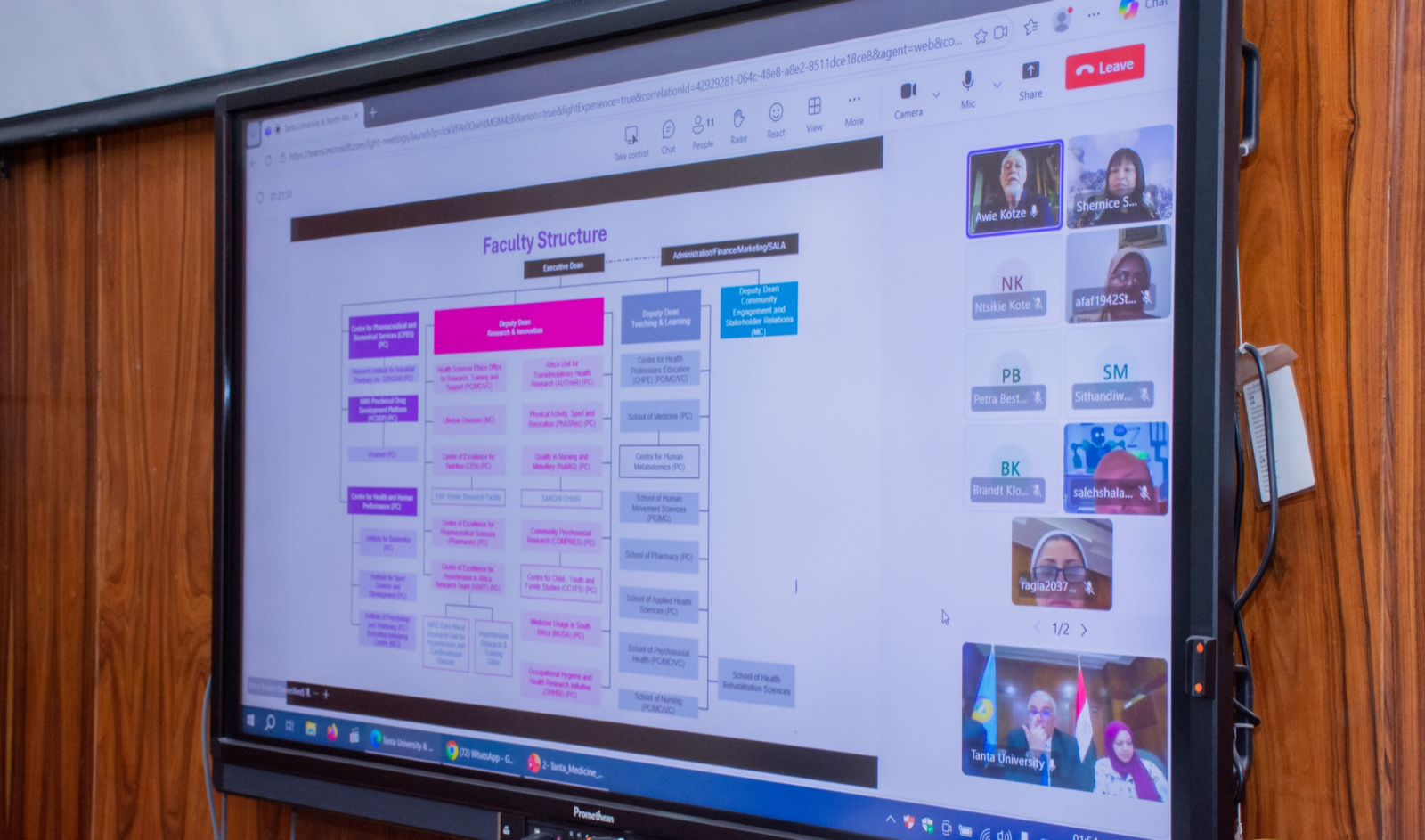 عقد الدكتور محمد حسين، رئيس جامعة طنطا، اليوم، اجتماعاً موسعاً "عن بعد" مع وفد رفيع المستوى من جامعة "نورث وست" North-West University بجمهورية جنوب أفريقيا؛ لبحث آفاق التعاون المشترك في المجالات التعليم والبحث العلمي والابتكار.