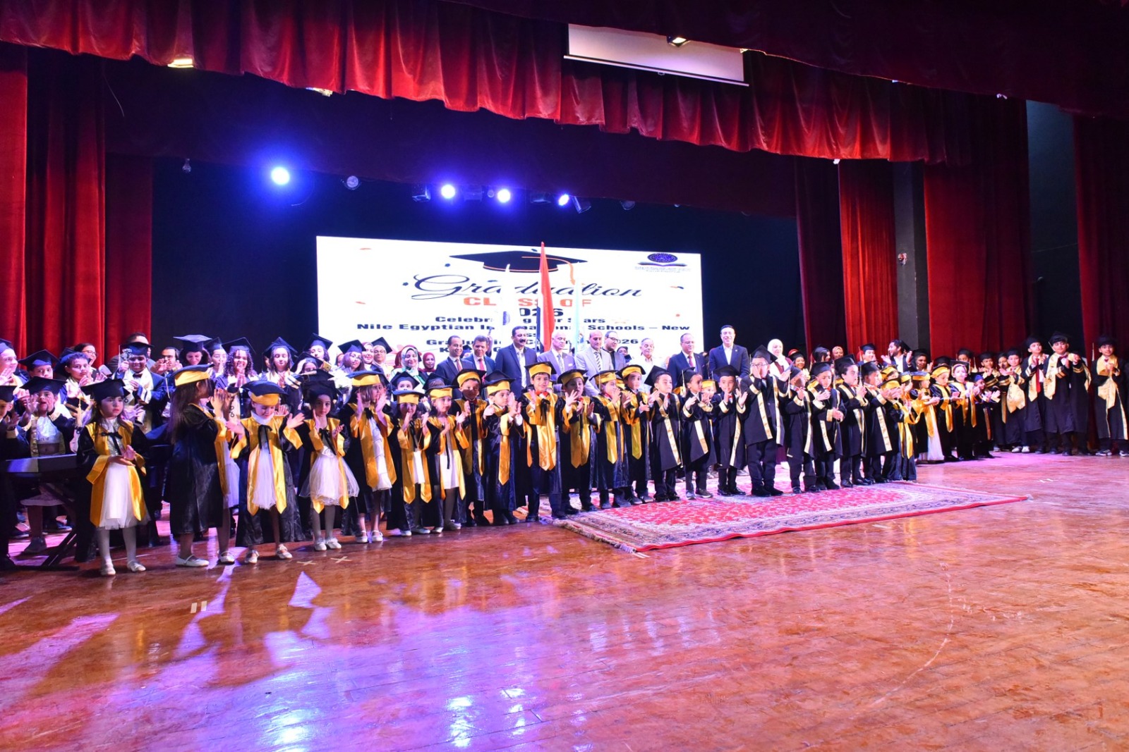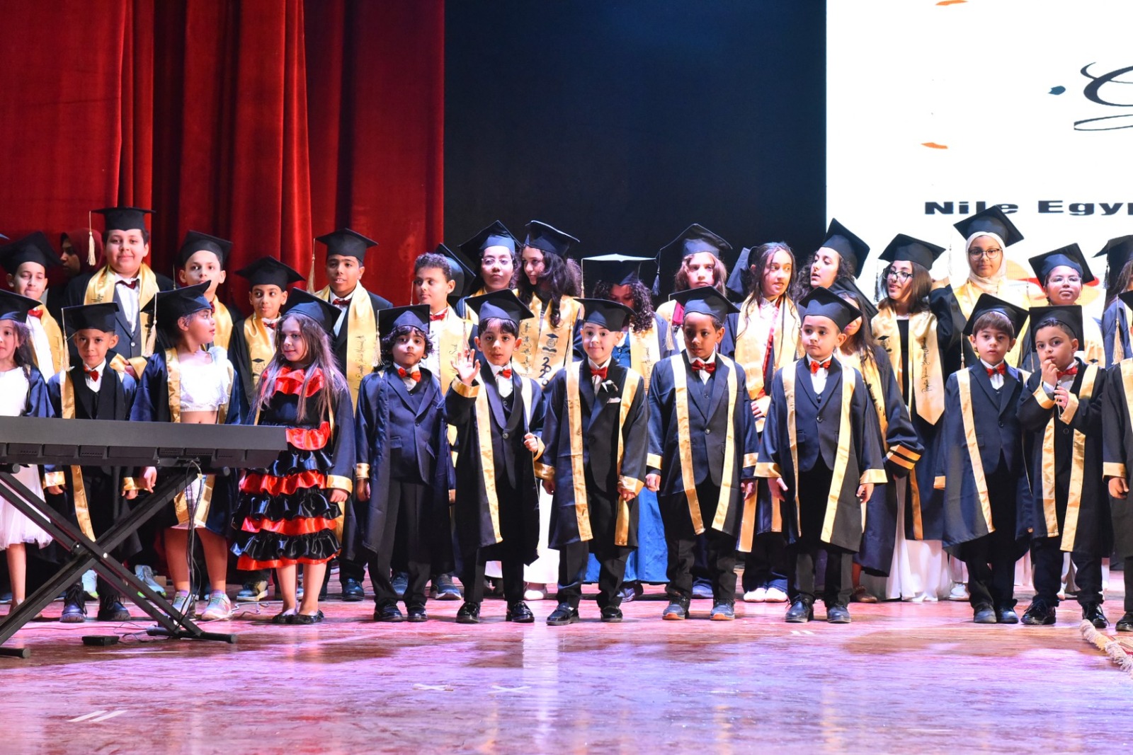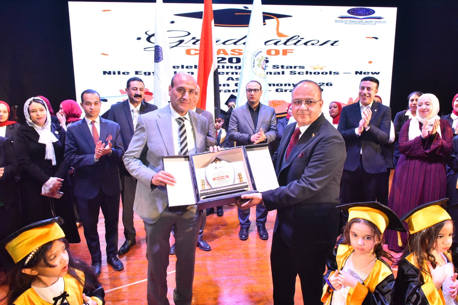 وفي ختام الحفل، تم تكريم المحافظ وإهداؤه درع مدارس النيل المصرية الدولية تقديرًا لجهوده، كما تم تكريم عدد من القيادات الحاضرة، وتبادل الدروع التذكارية، قبل إعلان تخرج الطلاب والتقاط الصور الجماعية التي وثّقت لحظات الفرح بين الخريجين وأسرهم.