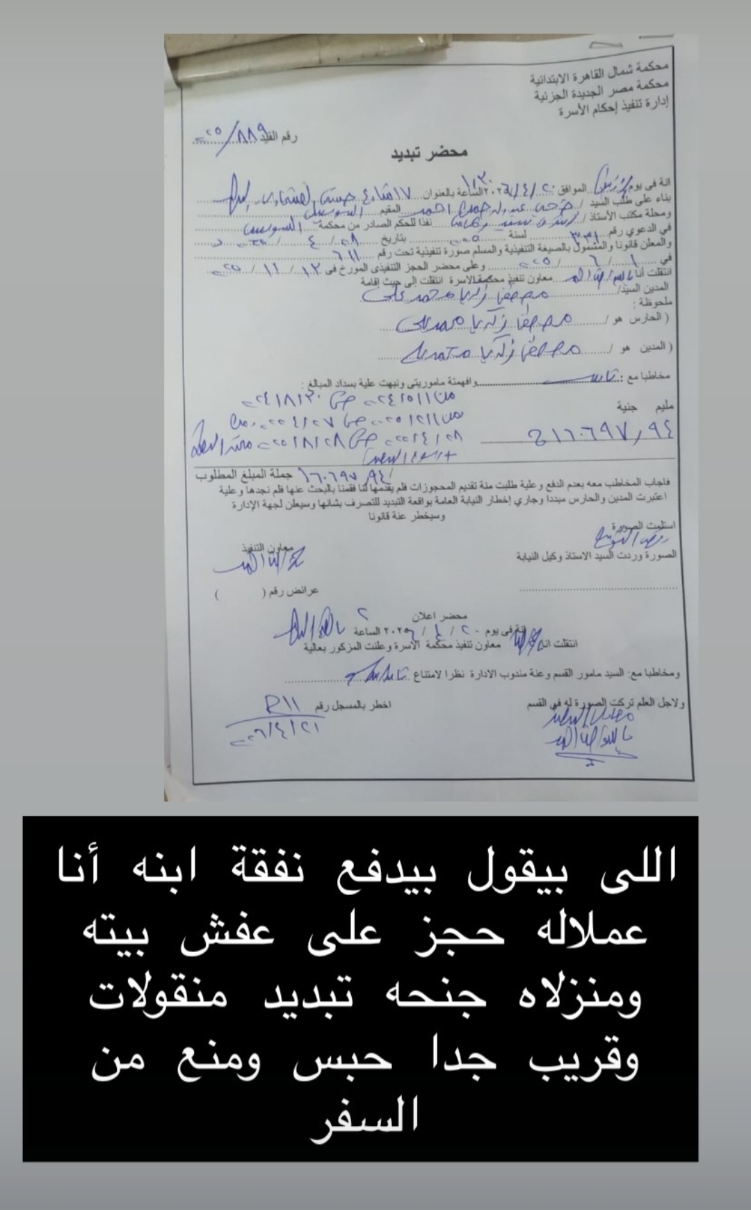 ونشرت طليقة مسلم، صورا لمستندات قضايا حررتها ضده منها محضر تبديد، وعلقت: «اللى بيقول بيدفع نفقة ابنه أنا عملاله حجز على عفش بيته ومنزلاه جنحه تبديد منقولات وقريب جدا حبس ومنع من السفر».