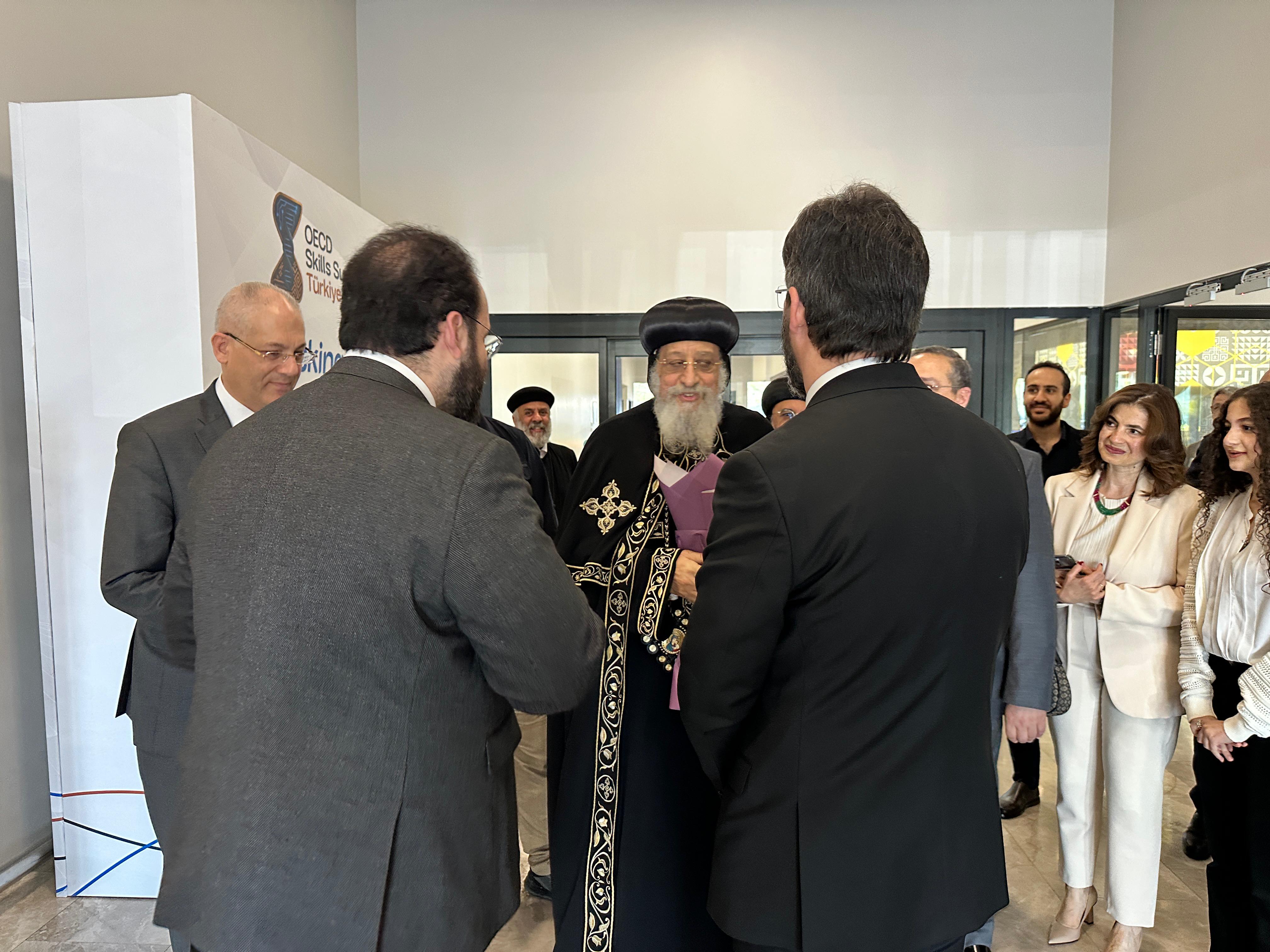 كان في استقبال قداسة البابا لدى وصوله المطار السفير المصري بتركيا الدكتور وائل بدوي وأعضاء السفارة المصرية.
