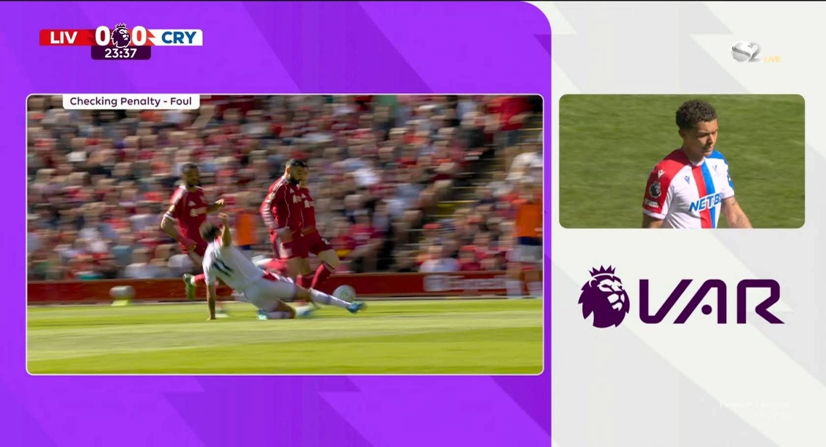 وفي الدقيقة ألغي حكم اللقاء ركلة جزاء لصالح محمد صلاح بعد الرجوع لتقنية الفيديو.