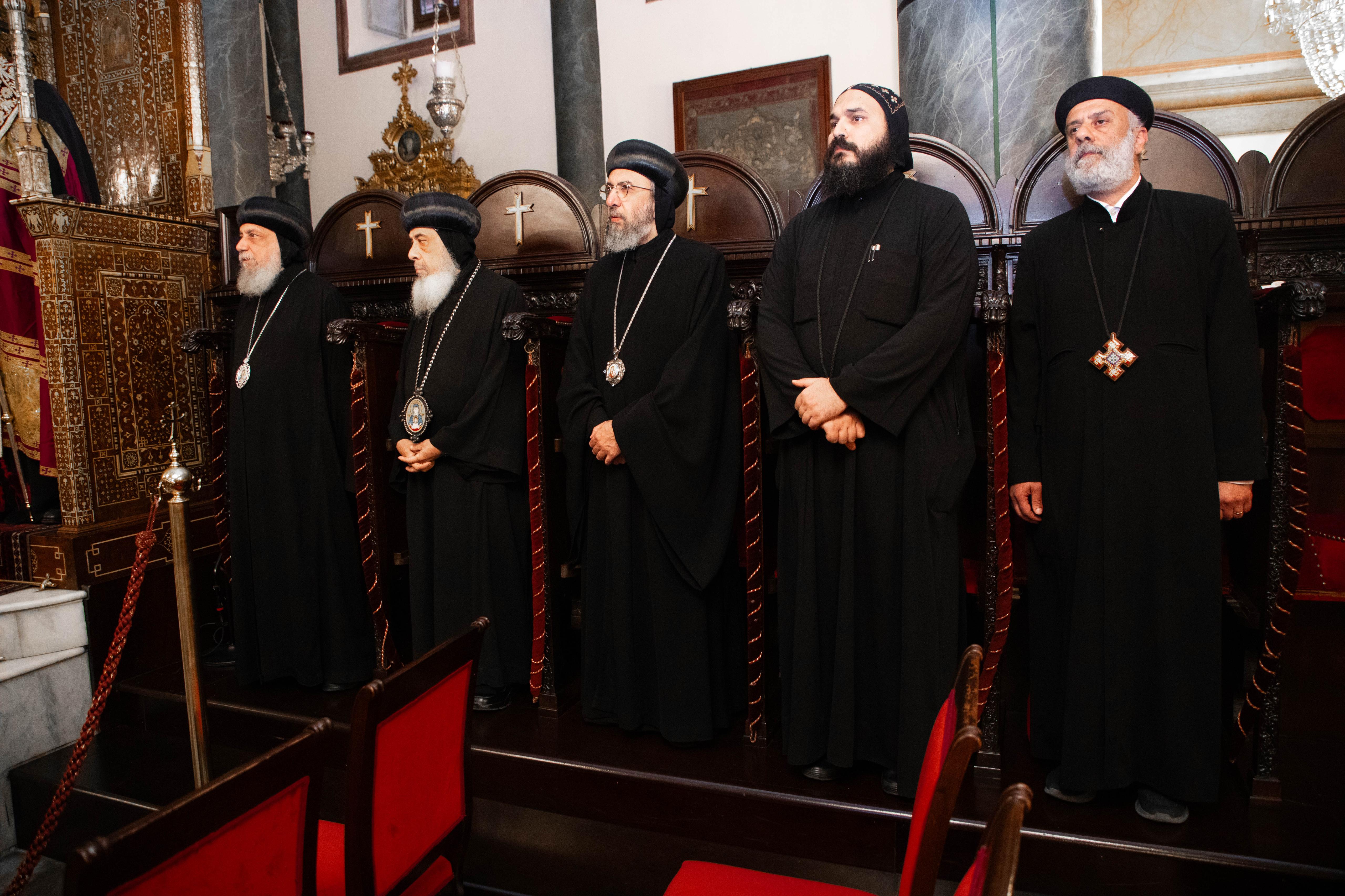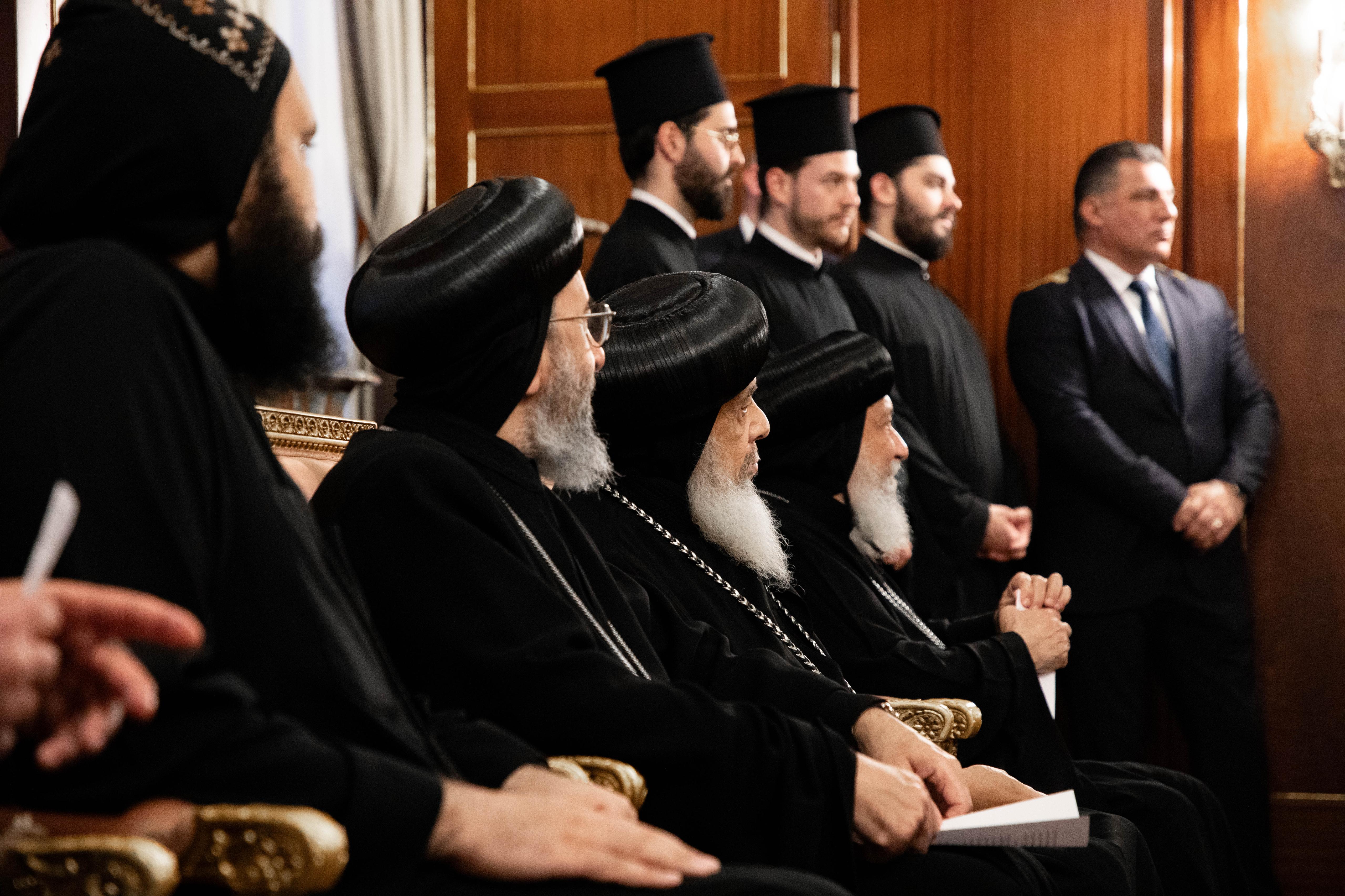 كان في استقبال قداسة البابا والوفد المرافق المطران إيمانويل، مطران خلقيدونية، وأُقيمت صلاة رسمية في بداية اللقاء تمت فيها تلاوة صلاة "البوليخرونيون" أي "إلى سنين عديدة"، وذلك ترحيبًا بقداسة البابا تواضروس الثاني، خليفة القديس مرقس الرسول، وهي صلاة ليتورجية تقليدية تُصلى في كنائس الروم الأرثوذكس، تكريمًا لرؤساء الكنائس.