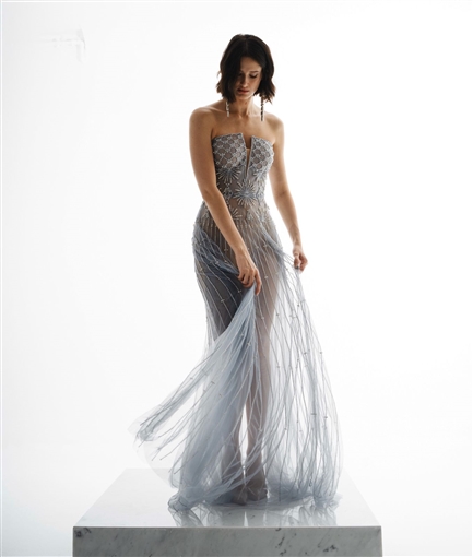 الفستان حمل توقيع المصمم أنس قضماني، المعروف باسم Anas Kada، وبلغ سعره نحو 135 ألف جنيه.