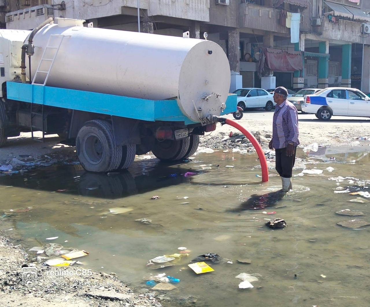 حي المناخ - شفط تراكمات المياه بشارعي "أسوان والصباح" وتطهير البالوعات