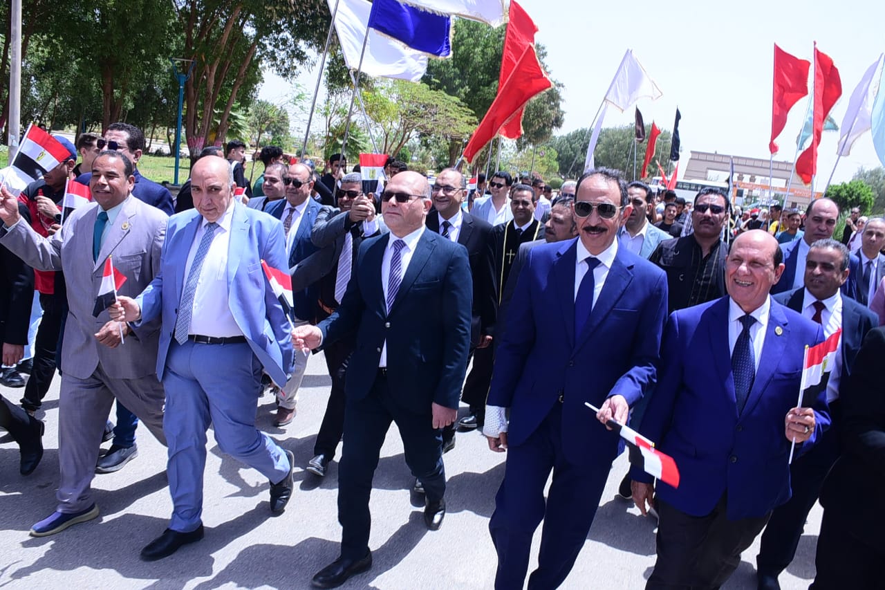 شهدت جامعة سوهاج تنظيم مسيرة وطنية حاشدة احتفالًا بالذكرى المجيدة لتحرير سيناء، تقدمها اللواء الدكتور طارق راشد محافظ سوهاج، والدكتور حسان النعماني رئيس جامعة سوهاج، واللواء محمود خليفه محافظ الوادي الجديد الأسبق و العميد وائل ابو القاسم المستشار العسكري للمحافظة وبمشاركة عدد من القيادات التنفيذية والشعبية، وأعضاء هيئة التدريس، والطلاب.