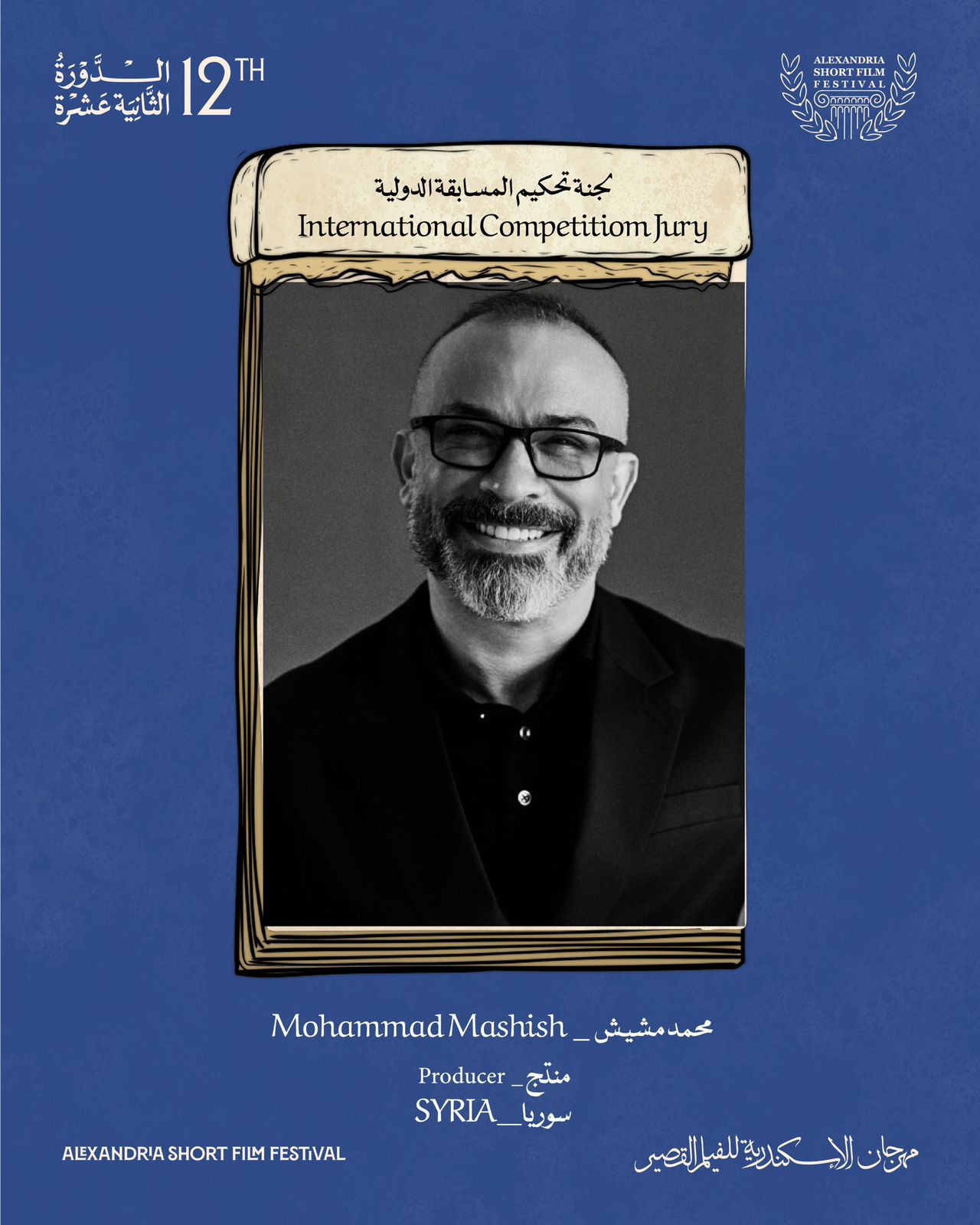 أعلنت إدارة مهرجان الإسكندرية للفيلم القصير انضمام المنتج السوري محمد مشيش إلى أعضاء لجنة تحكيم المسابقة الدولية لنسخته الثانية عشر، والتي تضم في عضويتها كل من الفنان كامل الباشا، الممثلة ركين سعد، الدكتورة ميرفت أبو عوف، وصانع الأفلام الإسباني جاومي كويلز.