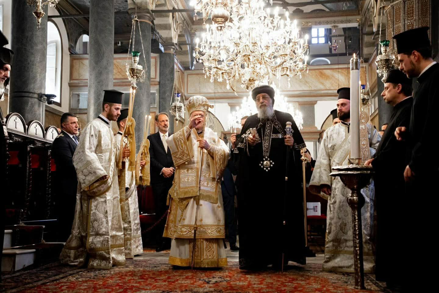 حضر قداسة البابا تواضروس الثاني، اليوم، القداس الإلهي البطريركي والسينوديسي الذي خدمه قداسة البطريرك برثلماوس الأول بطريرك القسطنطينية للروم الأرثوذكس، وشارك فيه أعضاء السينودس في كنيسة القديس جاورجيوس بالفنار بالمقر البطريركي، باسطنبول، وهو قداس أحد حاملات الطيب، حسب طقس كنيسة القسطنطينية.