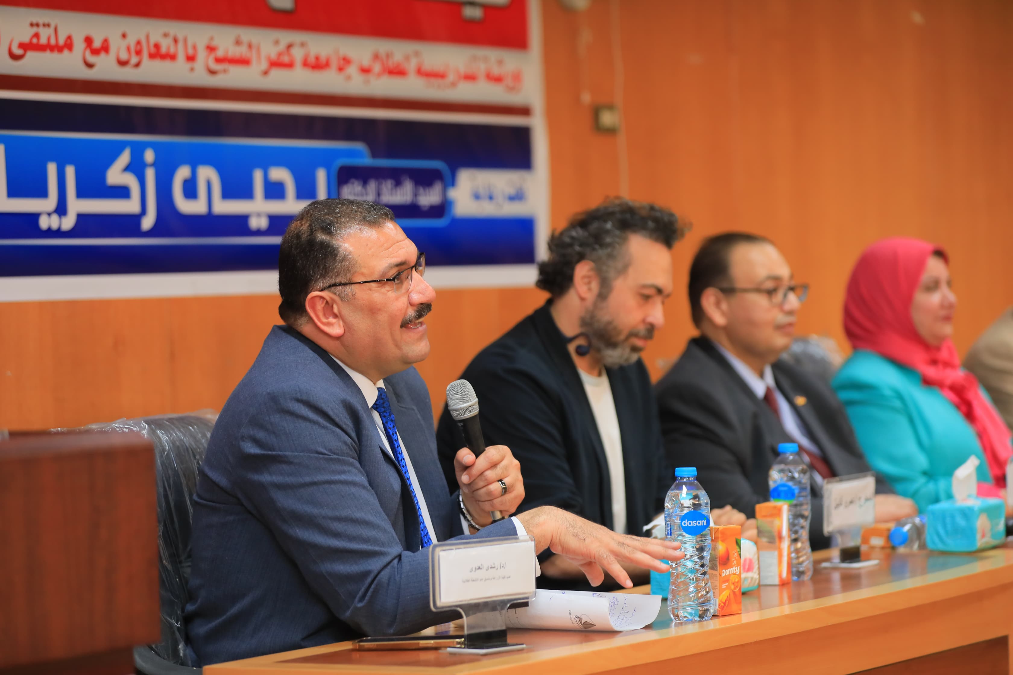 وفي كلمته خلال اللقاء، أكد الدكتور يحيى عيد رئيس جامعة كفر الشيخ، أن الجامعة تضع الأنشطة الثقافية والفنية على رأس أولوياتها، باعتبارها عنصرًا أساسيًا في بناء شخصية الطالب الجامعي، مشيرًا إلى أن المسرح يمثل مدرسة متكاملة تسهم في تنمية الوعي، وتعزيز مهارات التفكير النقدي، والتعبير الحر لدى الشباب.