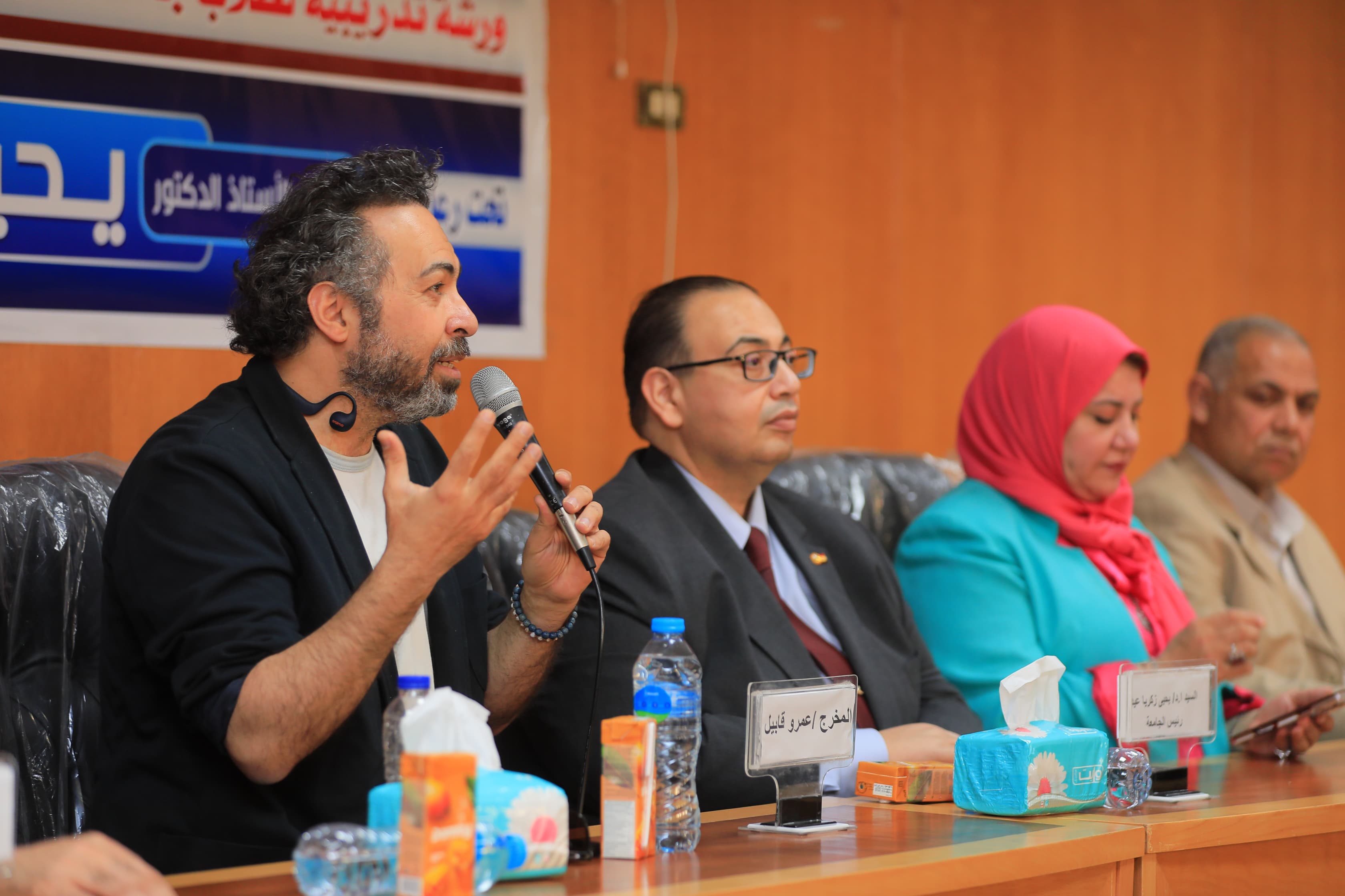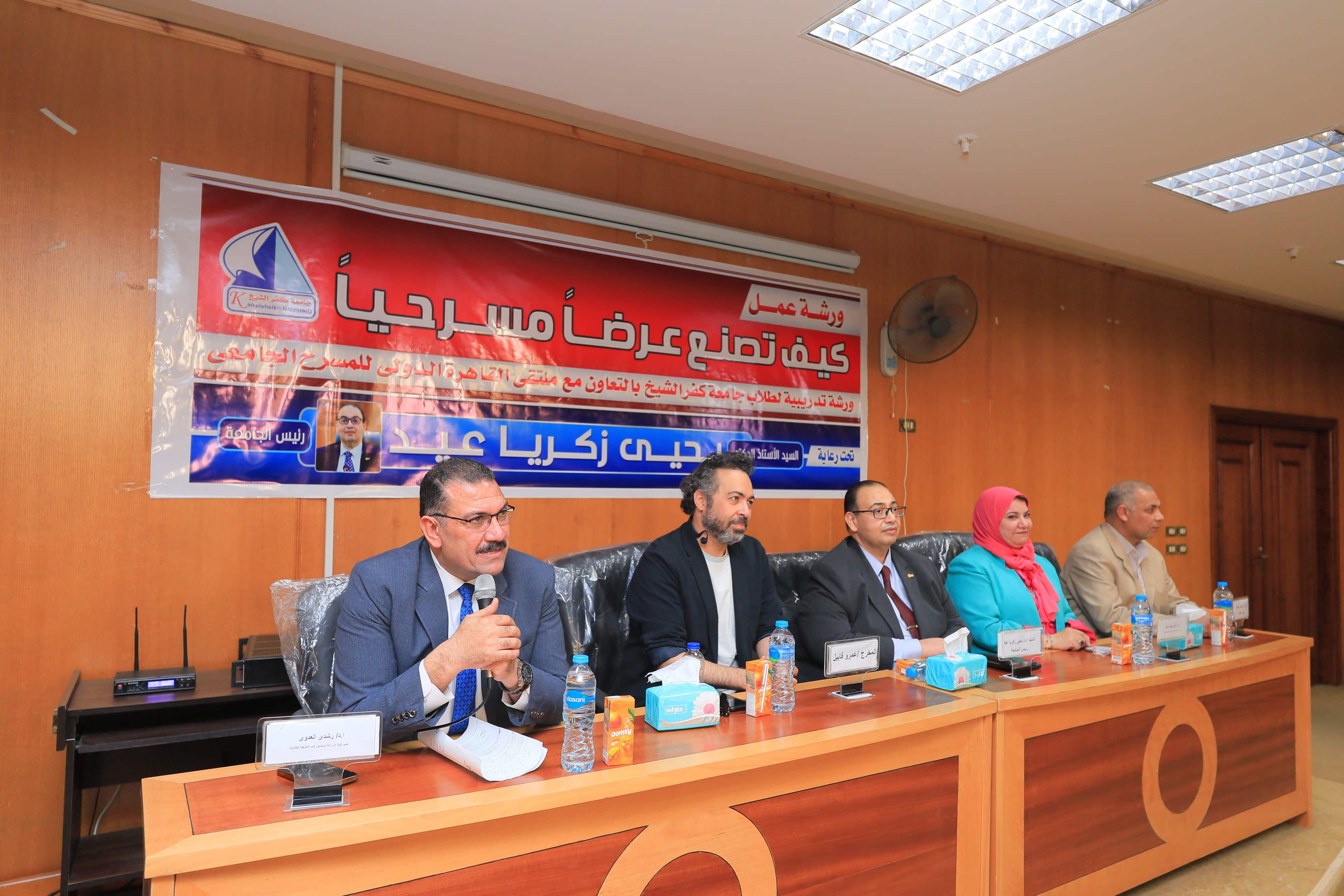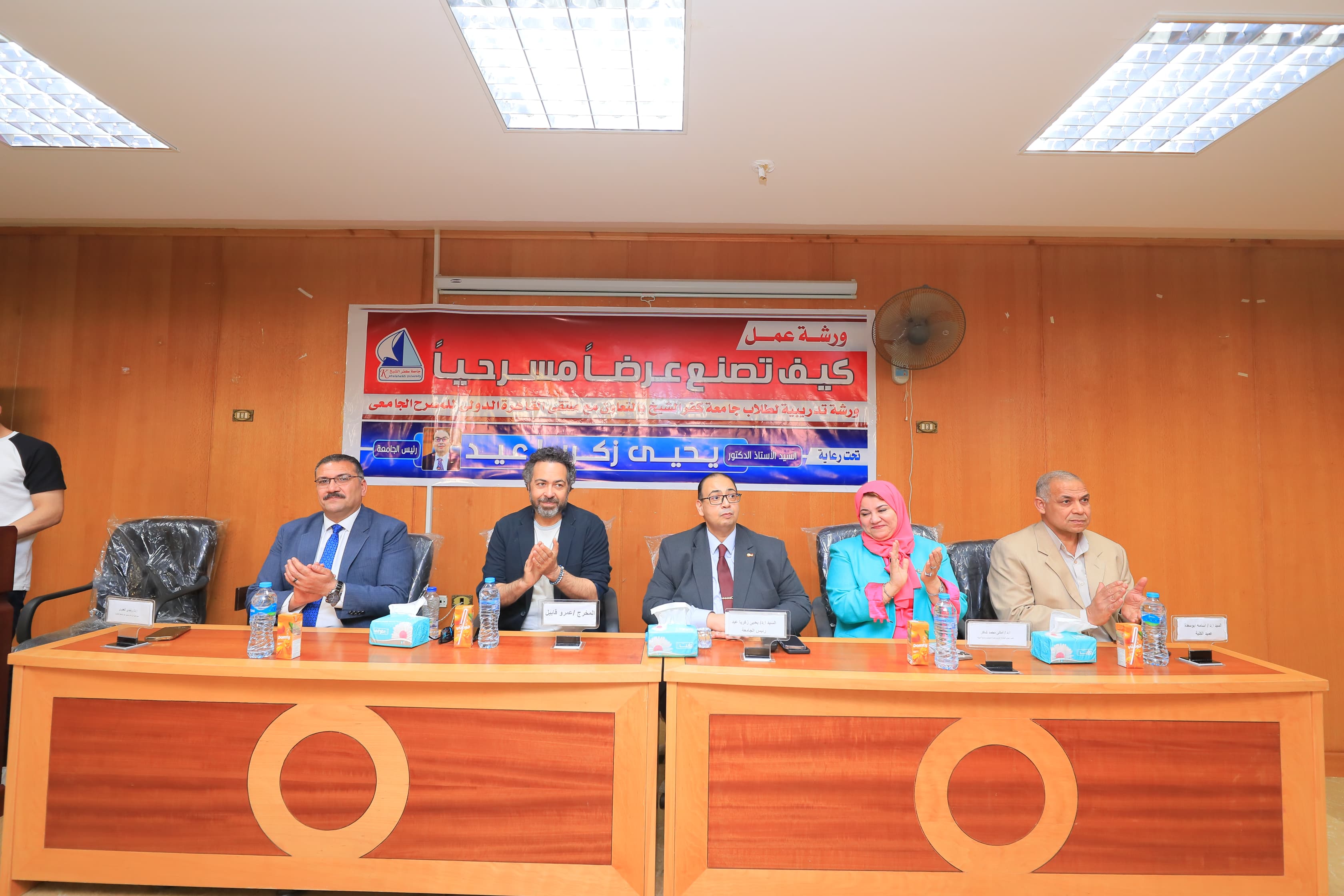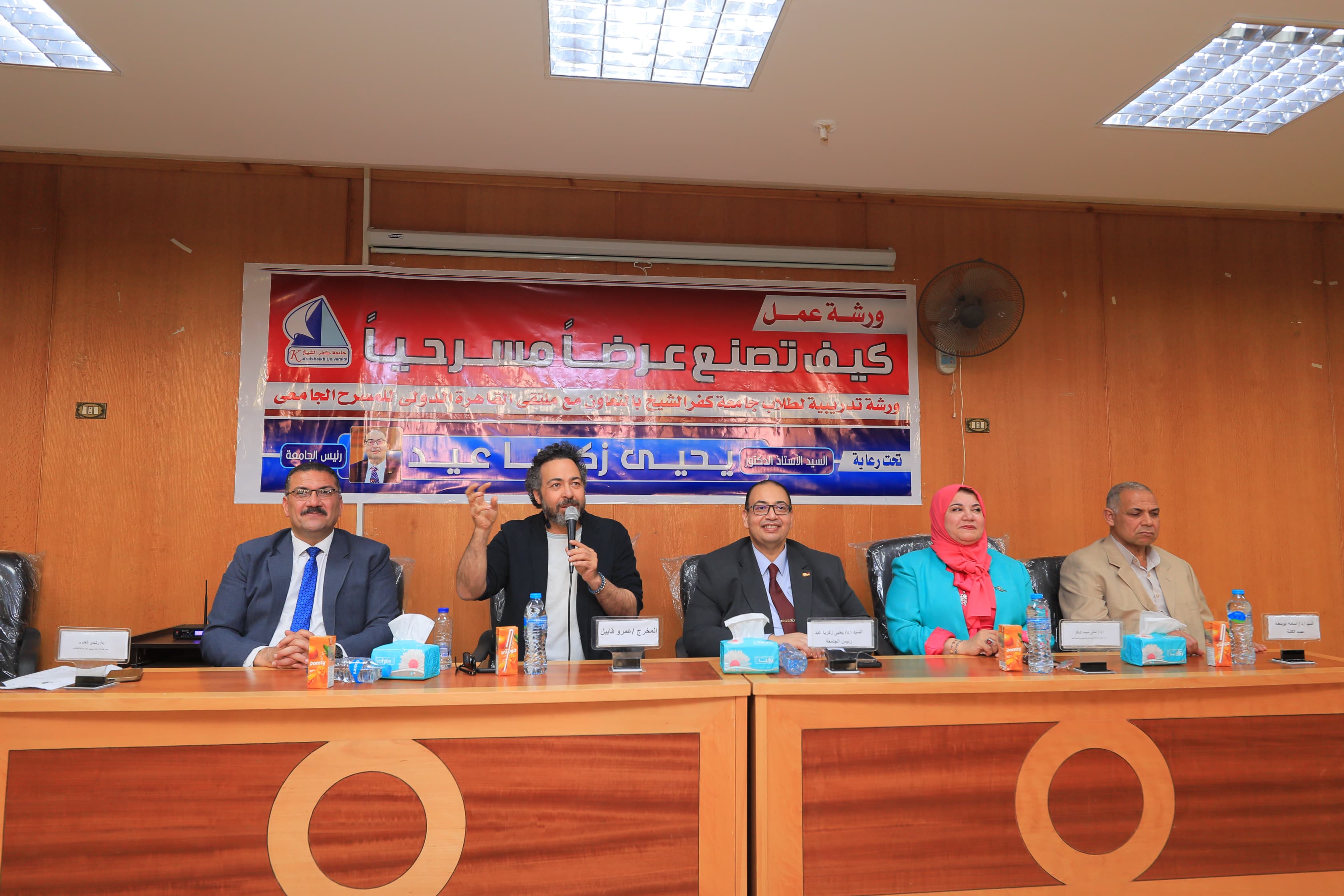 ومن جانبه، أعرب المخرج عمرو قابيل عن سعادته بالتعاون مع جامعة كفر الشيخ، مشيدًا بحماس الطلاب واهتمامهم بالفنون المسرحية، مؤكدًا أن المسرح فن شامل يجمع بين الإبداع الأدبي والبصري والأداء الإنساني، ويتطلب تكامل عناصر متعددة لتحقيق عرض ناجح.