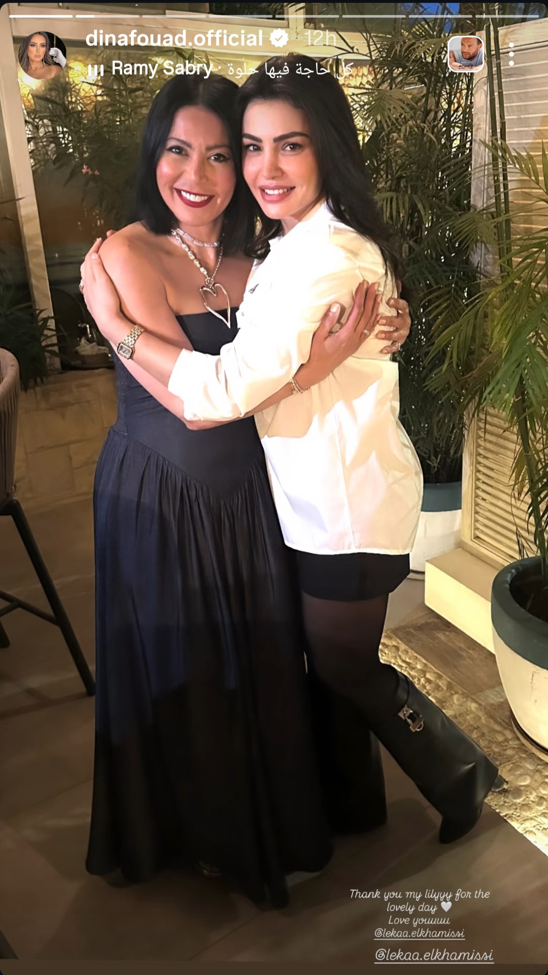 وتألقت دينا فؤاد بإطلالة جذابة برفقة الفنانة لقاء الخميسي ،مما حازت الصورة علي إعجاب متابعيها .