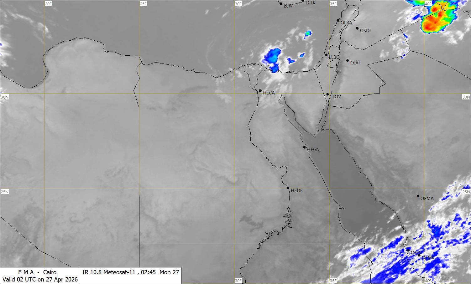 كما أشارت التقارير إلى استمرار تدفق السحب المنخفضة والمتوسطة الممطرة على مناطق متفرقة من السواحل الشمالية الغربية (خاصة مدينة الإسكندرية)، ومناطق من جنوب الوجه البحري.