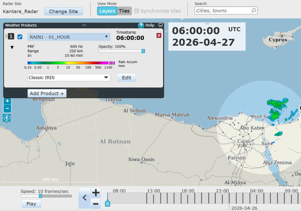 وقالت هيئة الأرصاد، إن الطقس صور الأقمار الصناعية وخرائط الطقس اليوم، تشير إلى استمرار التغيرات الجوية الحادة التي تميز فصل الربيع. ورصدت محطات الأرصاد منذ الساعات الأولى للصباح تحركاً ملحوظاً للسحب الممطرة باتجاه الشرق، مما يزيد من فرص سقوط أمطار متفاوتة الشدة على مناطق واسعة من السواحل الشمالية الشرقية وصولاً إلى شمال ووسط سيناء.