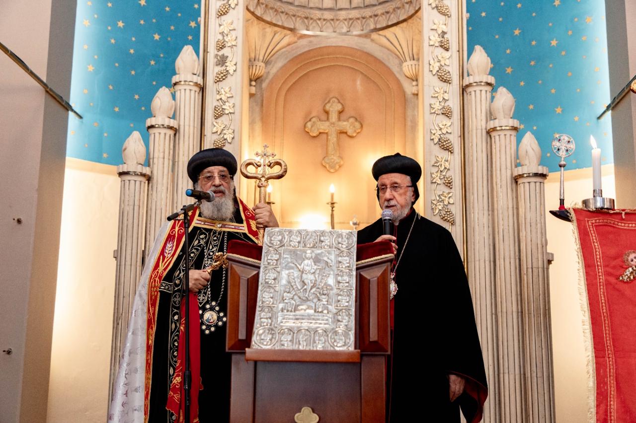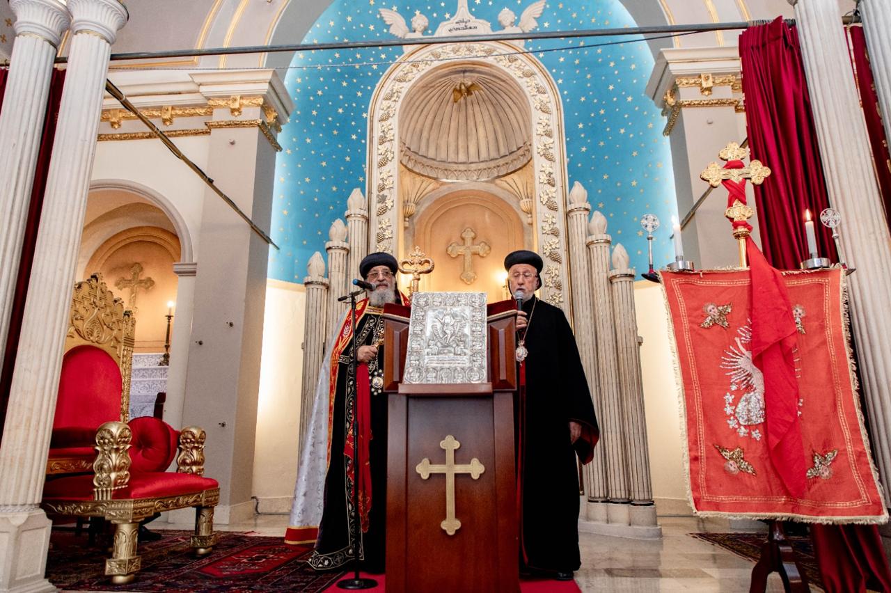 كان في استقبال قداسة البابا والوفد المرافق النائب البطريركي لإيبارشية اسطنبول وأنقرة وإزمير، نيافة مار فيلوكسينوس يوسف جتين، حيث تم تقديم البرنس البطريركي والصليب والحية النحاسية لقداسة البابا، فارتدى البرنس وحمل الصليب والحية النحاسية عند المدخل الرئيسي للمقر البطريركي، وتحرك الموكب يتقدمه الآباء الكهنة والشمامسة وهم يرتلون الألحان حتى وصلوا إلى داخل الكنيسة، التي تواجد فيها عدد من شعبها الذين جاءوا للترحيب بقداسة البابا، ثم أقيمت صلاة الشكر، وألقى بعدها النائب البطريركي كلمة تحية وترحيب، وبادره قداسة البابا بكلمات المحبة والشكر معربًا عن سعادته بوجوده بينهم.