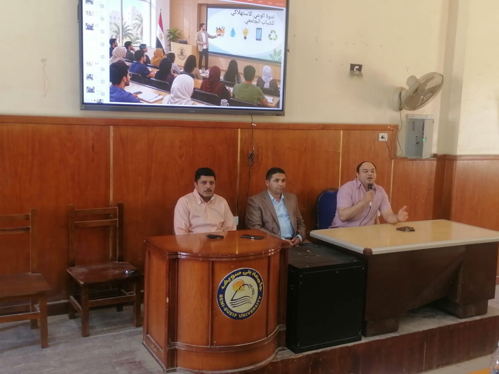 تحت رعاية الدكتور طارق علي، القائم بأعمال رئيس جامعة بني سويف، نظّمت كلية التربية ندوة توعوية بعنوان “تنمية الوعي الاستهلاكي لدى طلاب الجامعة”، جاء ذلك تحت إشراف الدكتور أبو الحسن عبد الموجود نائب رئيس الجامعة لشؤون خدمة المجتمع وتنمية البيئة، و الدكتور أسامة محمود قرني عميد كلية التربية، و الدكتور أحمد فكري بهنساوي وكيل الكلية لشؤون خدمة المجتمع وتنمية البيئة، وحاضر في الندوة كلا من الدكتور جمعة سعيد تهامي، أستاذ أصول التربية ومدير مركز تنمية الموارد البشرية بجامعة بني سويف، و الدكتور وليد محمد عبد الحليم، أستاذ اقتصاديات التعليم بكلية التربية.