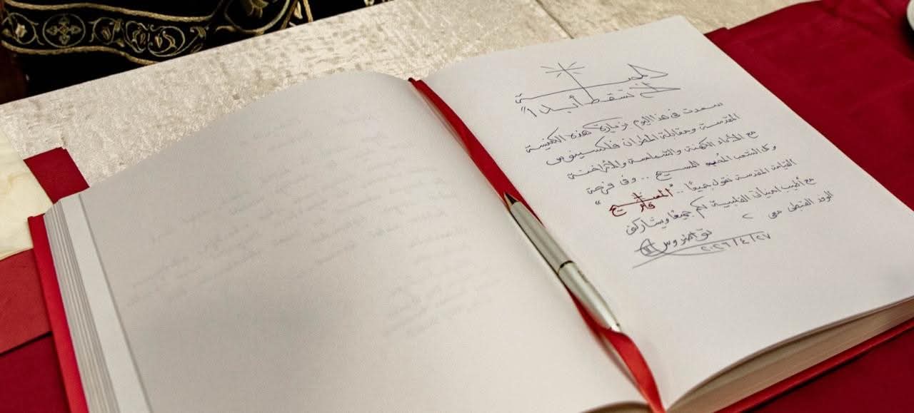 وسجل قداسة البابا تواضروس الثاني كلمة في دفتر كبار الزوار بمقر الكنيسة السريانية الأرثوذكسية بإسطنبول، عبر فيها عن سعادته بهذه الزيارة ولقائه برجال الكنيسة والشعب.