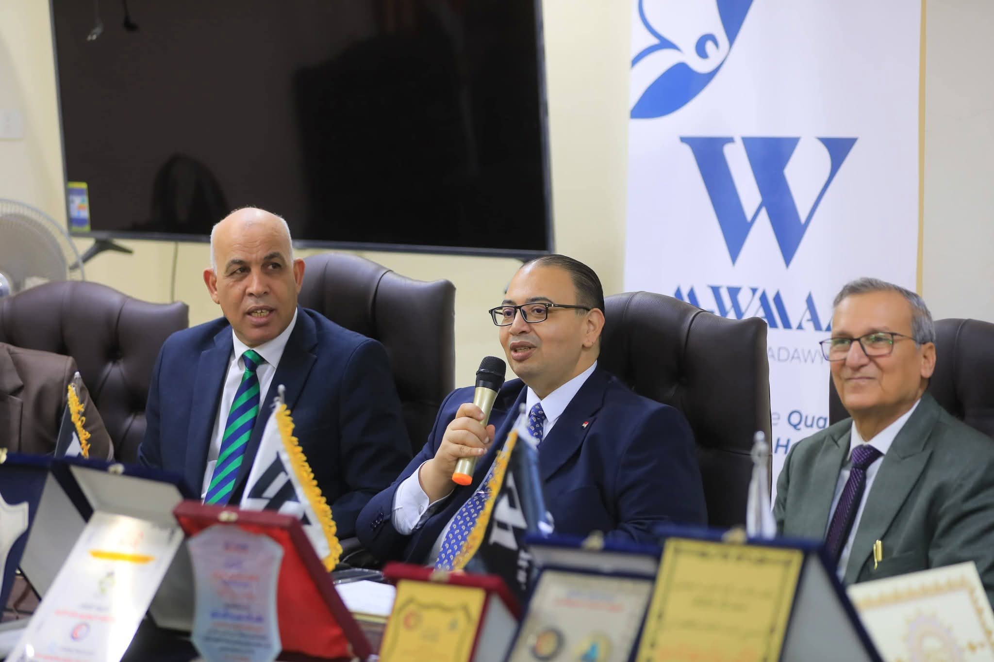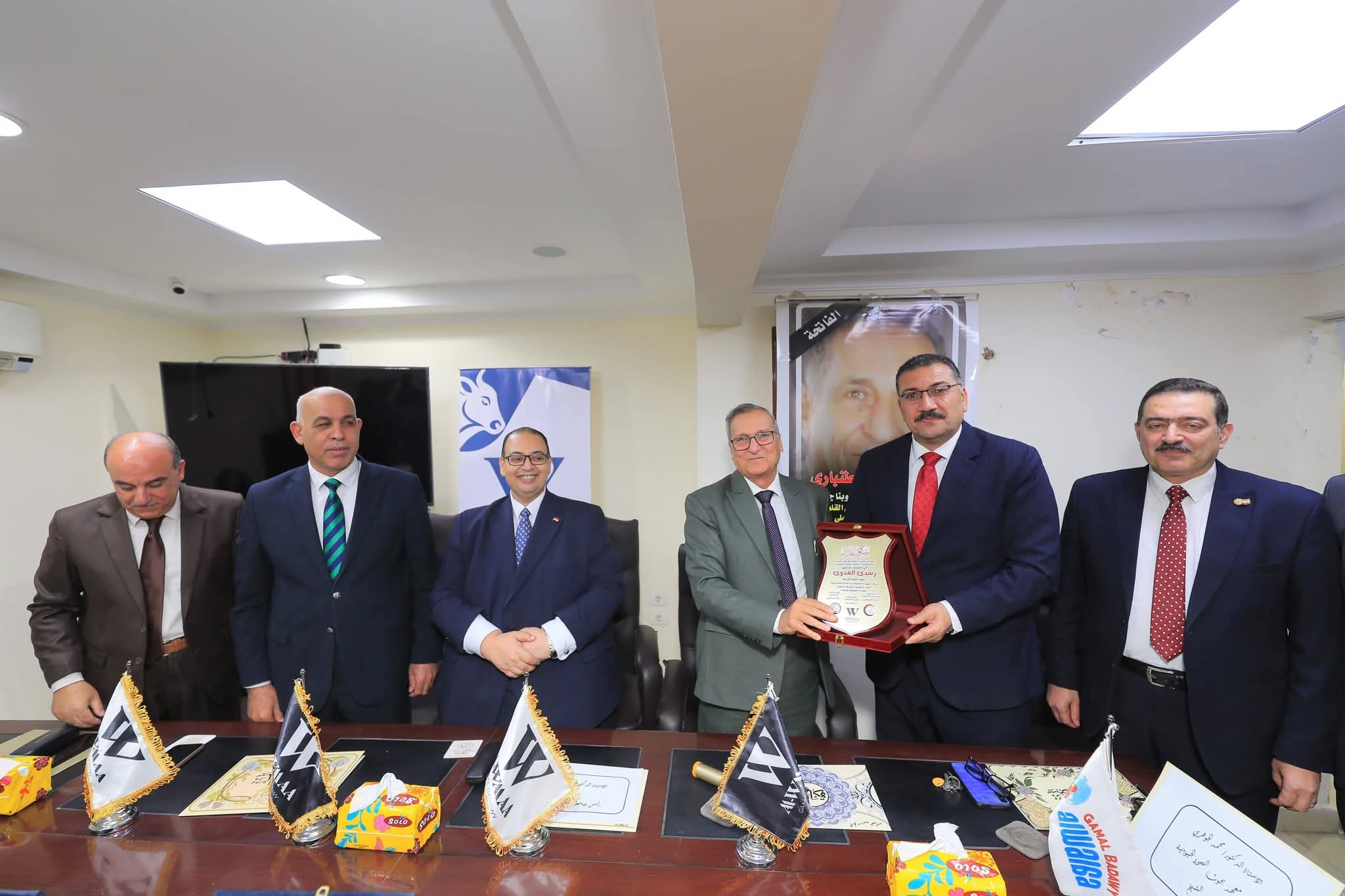جاء ذلك بحضور الدكتور إسماعيل إسماعيل ابراهيم نائب رئيس الجامعة للدراسات العليا والبحوث، والدكتور نشأت عبد الباري نقيب الاطباء البيطريين بكفر الشيخ، والدكتور محمد الجوهري رئيس معهد بحوث الصحة الحيوانية بكفر الشيخ، والدكتور سمير الشاذلي عميد كلية الطب البيطري، والدكتور رشدي العدوي عميد كلية الزراعة، وبحضور نخبة من الأساتذة والباحثين والأطباء البيطريين