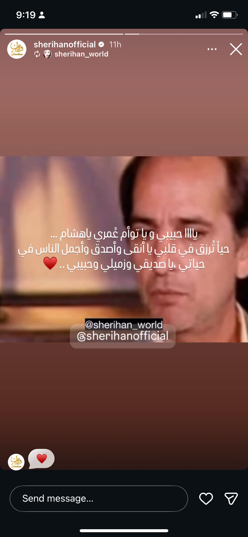 وعلقت شريهان على الفيديو بكلمات مؤثرة، قائلة: "يا حبيبى ويا توأم عمرى يا هشام... حيًا ترزق فى قلبى يا أنقى وأصدق وأجمل الناس فى حياتى، يا صديقى وزميلى وحبيبي".