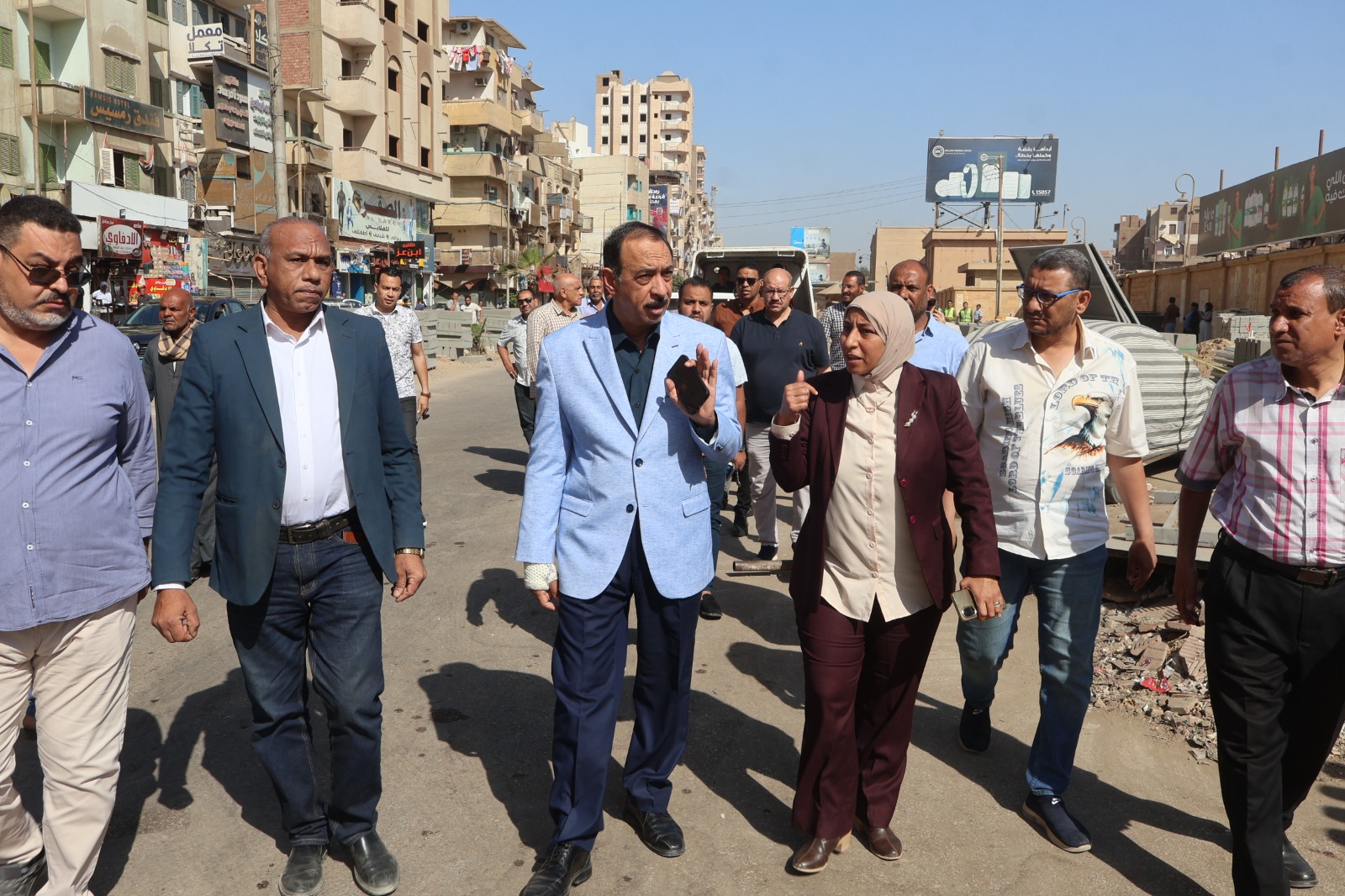 وتفقد المحافظ شارع المحطة وصولا إلى ميدان العروبة، موجهًا لجنة الإعلانات بالمحافظة بضرورة تنظيم وتنسيق الإعلانات بما يتناسب مع الهوية البصرية الجديدة.