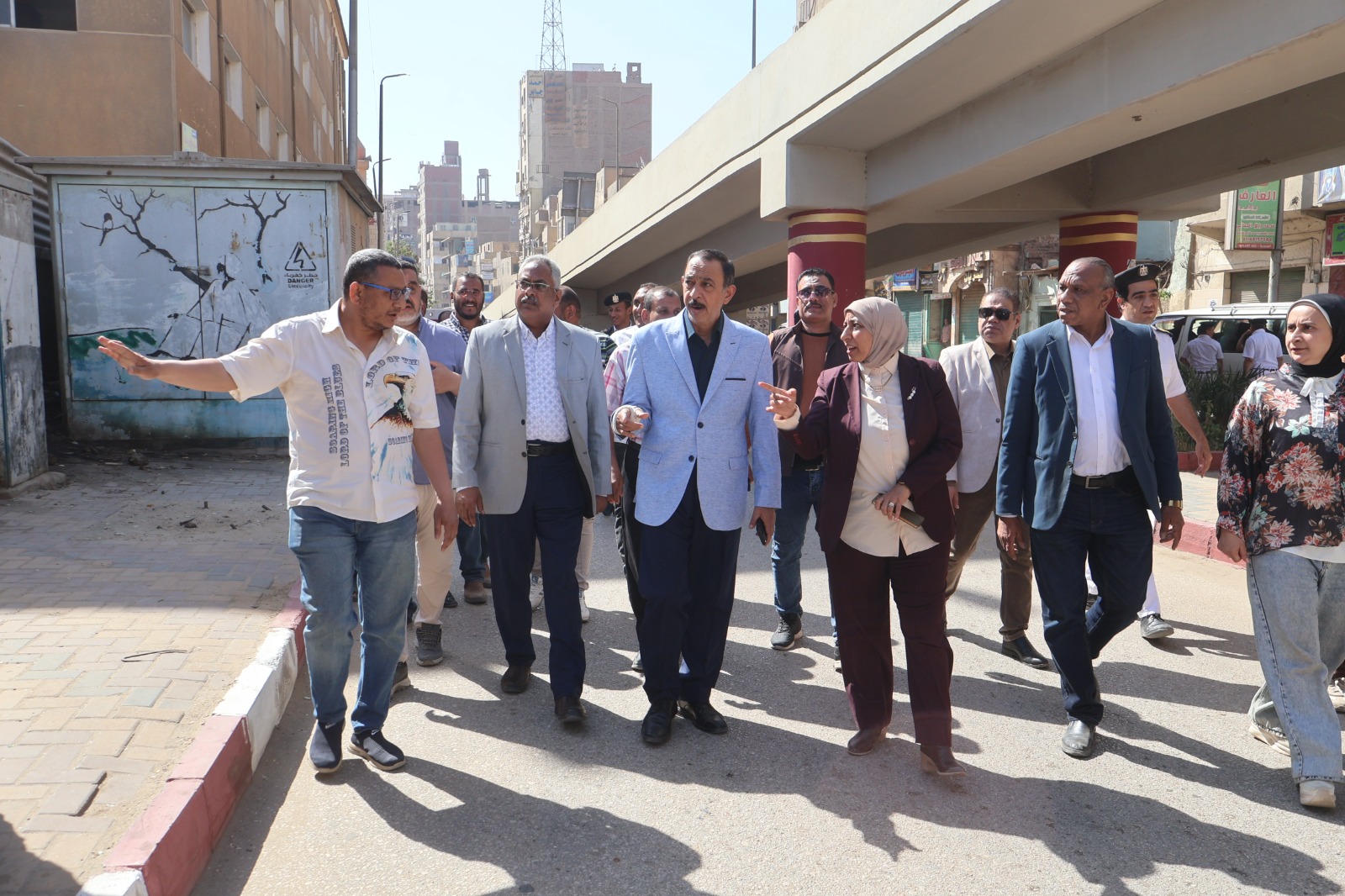 واستهل المحافظ الجولة بتفقد الأعمال الجارية في تطوير الأكشاك أعلى نفق السكة الحديد، مؤكدا أهمية مشروع تطوير شارع المحطة، باعتباره أحد الشوارع الحيوية بوسط مدينة سوهاج، موجها بضرورة توحيد الهوية البصرية للأكشاك والمحلات بما يتماشى مع النسق الحضاري للمحافظة.