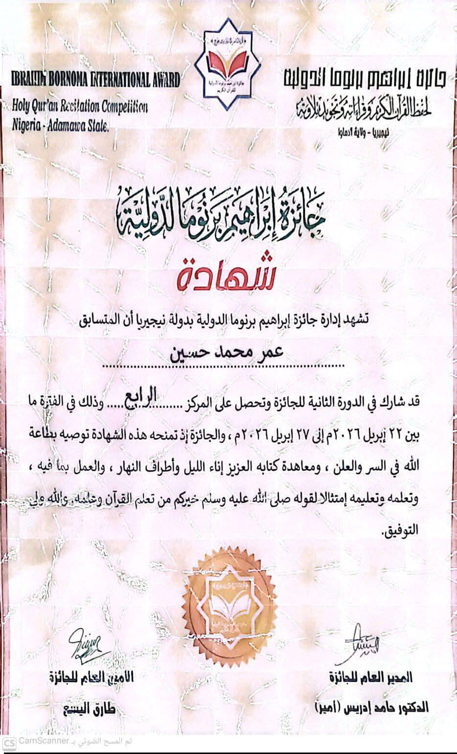 تقدمت كلية القرآن الكريم للقراءات وعلومها بطنطا، بخالص التهنئة القلبية إلى الطالب المجتهد عمر محمد حسين، أحد أبنائها المتميزين، وذلك بمناسبة حصوله على المركز الرابع في مسابقة جائزة إبراهيم برونوما الدولية لحفظ القرآن الكريم بدولة نيجيريا، في إنجاز مشرف يعكس تميز طلاب الكلية وجهودهم في خدمة كتاب الله.