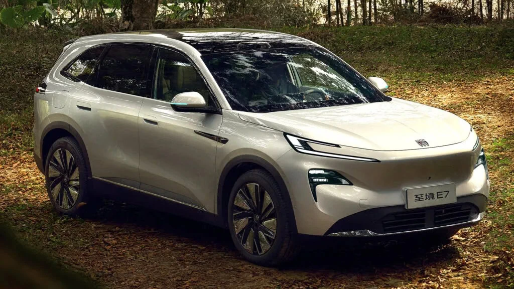 ويوجد بـ سيارة بويك إلكترا E7 الهجين أيضا، خطوط جانبية ناعمة، وكسوة بلاستيكية للهيكل، ومقابض أبواب انسيابية، وأقواس عجلات بارزة، وبها لمسات معدنية خارجية، وبها مصابيح خلفية باسم Galaxy Wing، وجناح خلفي واضح .
