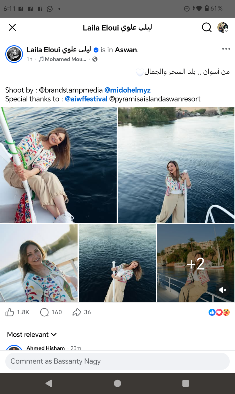 وظهرت ليلي علوي في الصورة من رحلتها الأخيرة،من اسوان، ونالت الصورة اعجاب متابعيها وتفاعلوا معها بوضع القلوب الحمراء.
