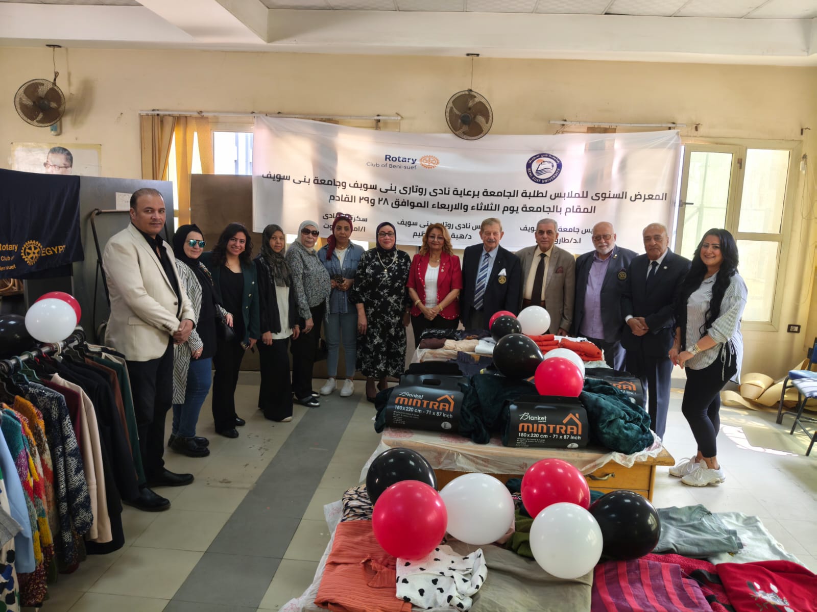 رئيس جامعة بني سويف يفتتح المعرض السنوي للملابس بالتعاون مع نادي روتاري