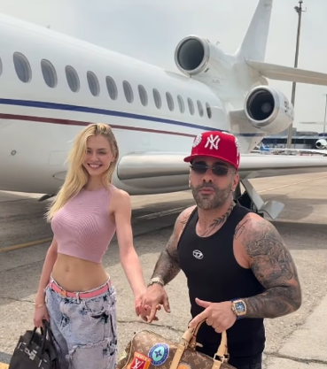 في مقطع فيديو نُشر على حسابه في إنستجرام يوم الأربعاء، يظهر الشاب البالغ من العمر 38 عامًا وهو يُقبّل عارضة الأزياء الإسبانية، التي تحمل حقيبة هيرميس بيركين بقيمة 25 ألف جنيه إسترليني، داخل الطائرة، في رحلة يُزعم أنها إلى إيبيزا لحضور افتتاح موسم 2026.