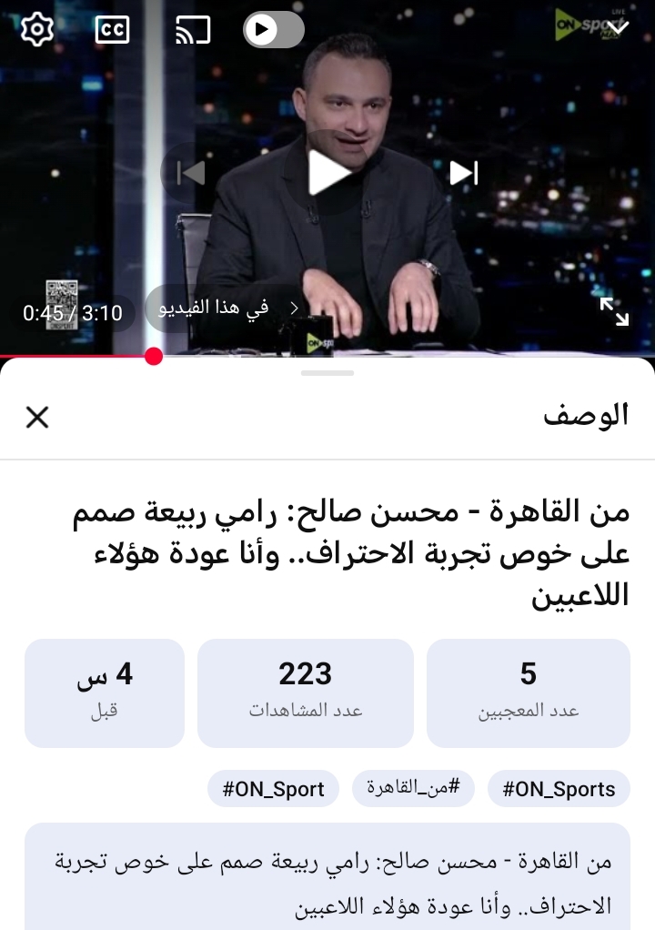 وتابع أن ربيعة كان مصممًا على الاحتراف، وكان يمتلك عرضًا جيدًا، مؤكدًا أنه اتخذ قراره بالرحيل بعدما شعر بعدم حصوله على التقدير المطلوب، قائلاً: “أنا مش مع الرجوع للماضي، صفحة واتقفلت”، مشيرًا إلى أنه تألق بعد انتقاله إلى نادي العين ويحصل على مقابل مادي جيد، وأن تفكيره أصبح احترافيًا خارج مصر.