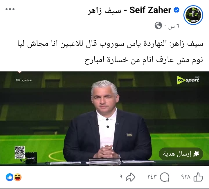 كشف الإعلامي سيف زاهر عن حالة الحزن التي يعيشها المدير الفني للأهلي ييس توروب عقب خسارة الفريق أمام بيراميدز بثلاثية في الدوري المصري الممتاز.