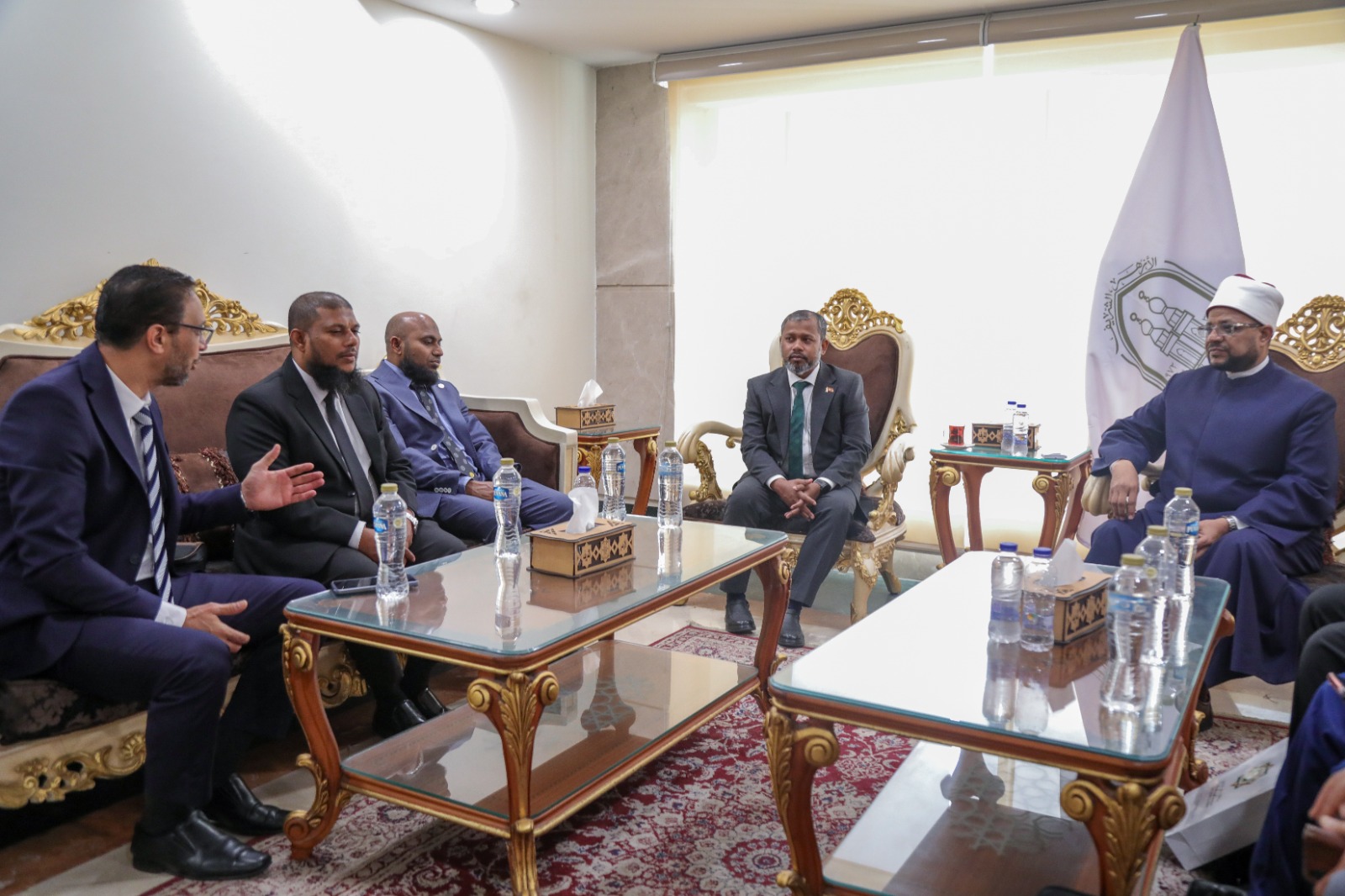ضمَّ الوفد: الدكتور علي زاهر، رئيس الجامعة الإسلاميَّة بالمالديف، والدكتور أحمد أمين، نائب رئيس الجامعة، والدكتور محمد منصور، عميد كليَّة القرآن الكريم بالجامعة، والدكتور نيمال محمد، عميد كليَّة معارف الوعي والعلوم الإنسانيَّة بالجامعة، والدكتور حمدي جمعة، عضو هيئة التدريس بالجامعة.