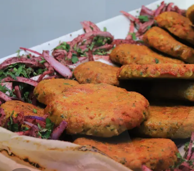 تشكل أقراص ثم يدهن وجه الكفتة بماء البصل والفلفل.