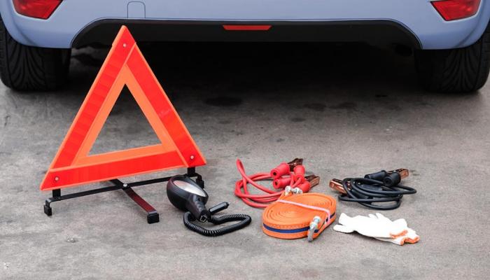 تحتوي السيارات على العديد من المعدات التي يجب توافرها كي تستخدم في حالات الطوارئ، ومن ضمن هذه المعدات الأساسية للطوارئ في السيارة، حقيبة إسعافات أولية، وإطار احتياطي مع رافعة ومفتاح عجل، وكابلات توصيل بطارية، ومنفاخ إطارات، ومثلث تحذير عاكس.