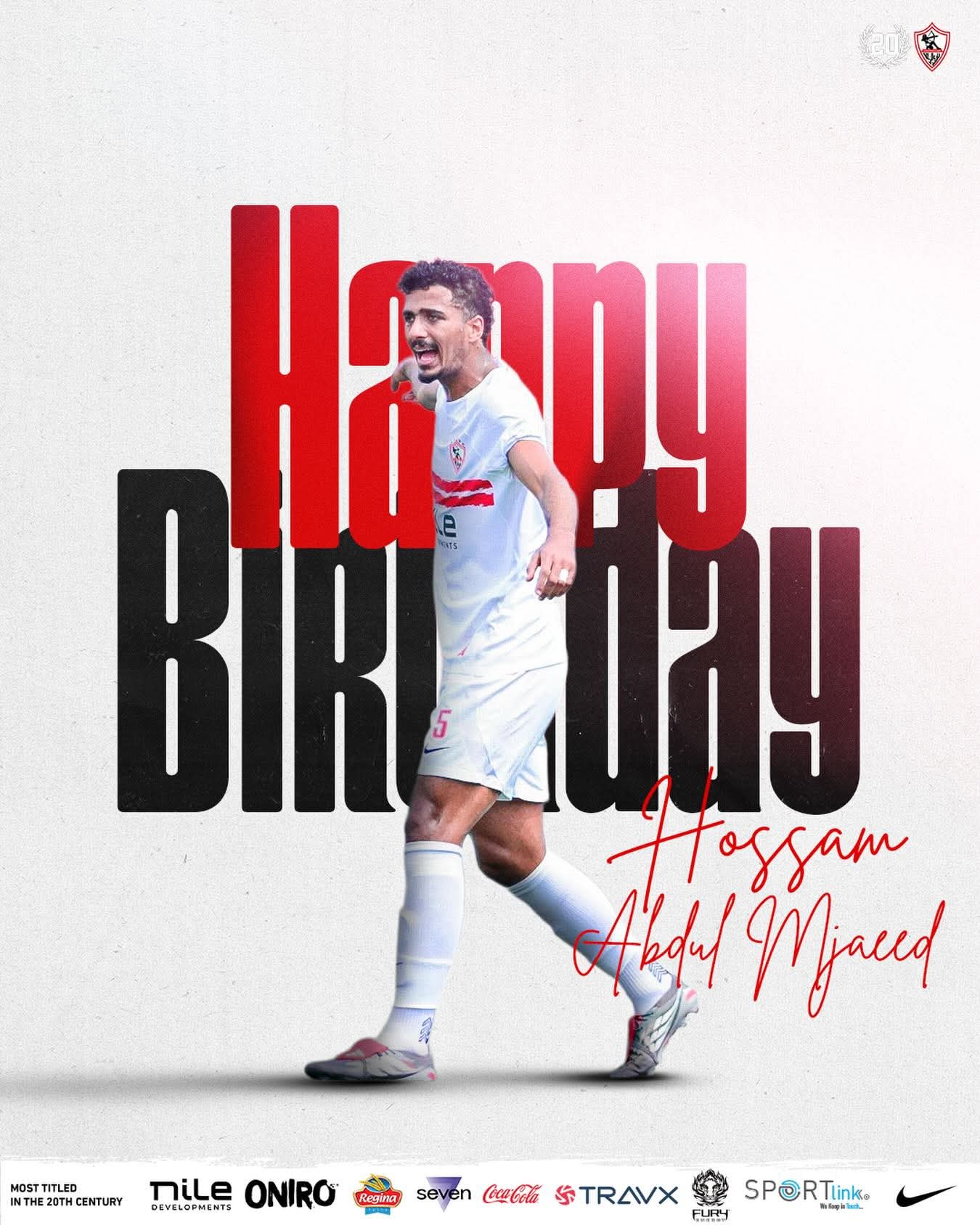 ونشرت الصفحة الرسمية للزمالك، صورة لحسام عبد المجيد، وعلقت عليها: "يحتفل لاعبنا حسام عبد المجيد بعيد ميلاده اليوم، عيد ميلاد سعيد".
