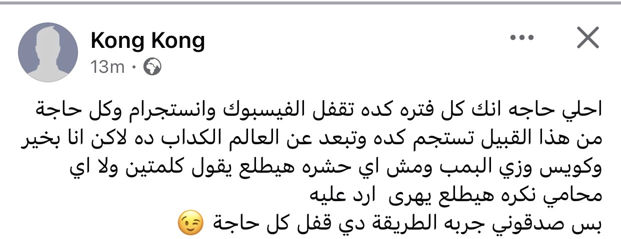 وأشار في منشوره إلى رفضه ما وصفه بالهجوم عليه أو تداول معلومات عنه، نافيًا بشكل غير مباشر ما يتم تداوله بشأن وضعه، وداعيًا لتجربة الابتعاد عن مواقع التواصل لفترة.
