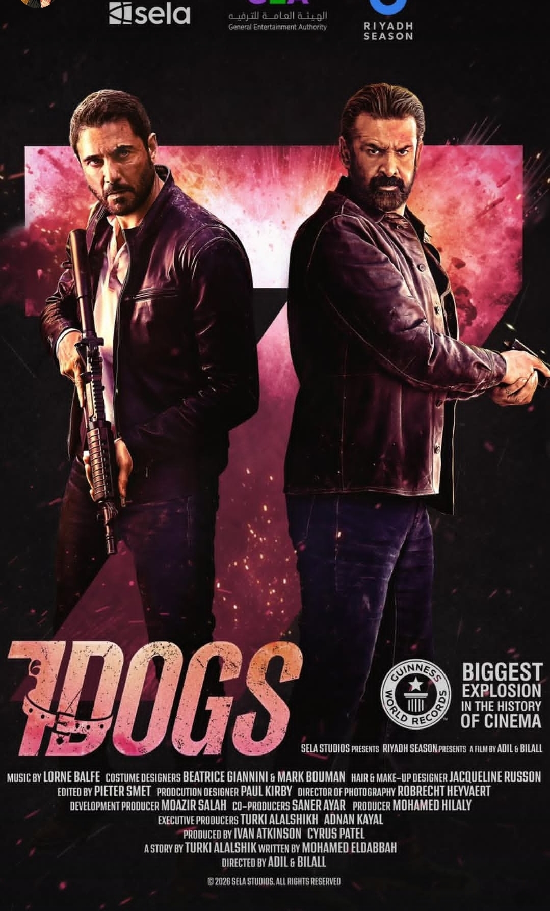 طرح المستشار تركي آل الشيخ، رئيس الهيئة العامة للترفيه، البوستر الرسمي لفيلم “7Dogs”، بطولة النجمين كريم عبدالعزيز وأحمد عز، والمقرر طرحه بدور العرض السينمائية في مصر يوم 27 مايو المقبل، لينافس في موسم عيد الأضحى.