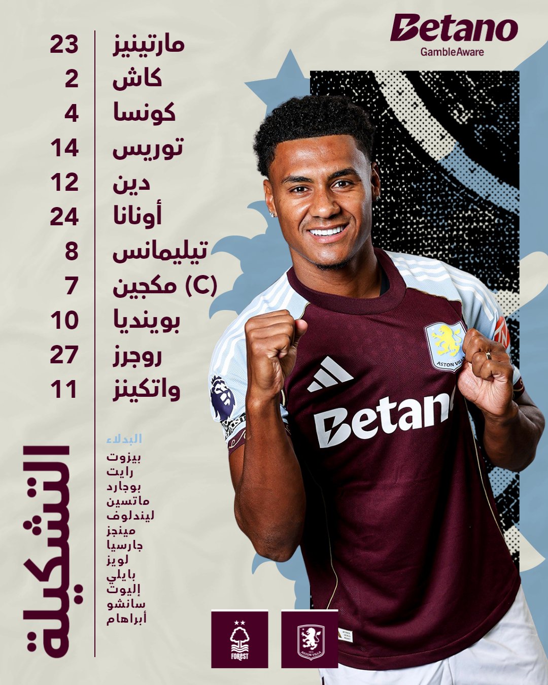 تشكيل أستون فيلا أمام نوتنجهام فورست