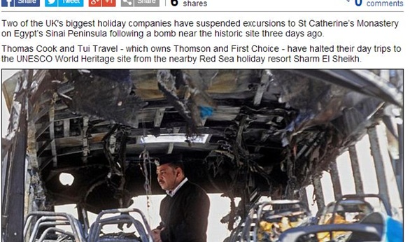 وقالت صحيفة "الديلي ميل" البريطانية إن المكتب البريطاني وجه نصيحة لشركات السياحة بعدم تغيير برامجها السياحية وتعليق رحلاتها لمصر وخاصة شبه جزيرة سيناء، لأن الوضع هناك مازال آمناً ومستقر على الرغم من التفجير الإرهابي.