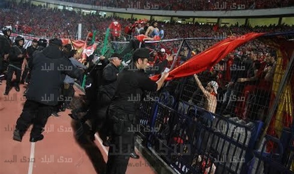 بعدها حاول رجال الأمن منع هؤلاء الجماهير من النزول لأرض الملعب ، مما تسبب فى حدوث اشتباكات بين الطرفين اسفرت عن إصابات عديدة فى أفراد الأمن التابعين لوزارة الداخلية.