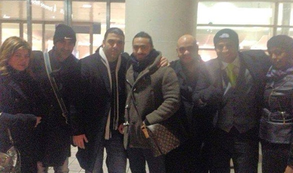 بالصورة .. تامر حسني يتحدى البرد في مطار ديترويت