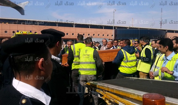 كما وصلت الجثامين على متن طائرة حربية كان المشير السيسي قد أصدر قرارا بتحركها لإحضار المصريين السبعة الى أرض الوطن.