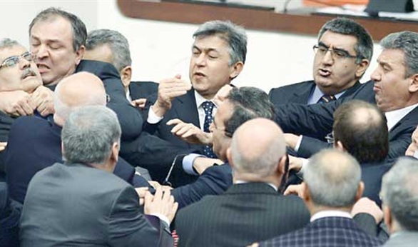 اندلعت اشتباكات بالأيدي وتبادل اللكمات بين نواب حزب العدالة والتنمية ونواب المعارضة في البرلمان التركي، مما أدى إلى نقل نائب حزب الشعب الجمهوري عن مدينة قيصري، سوقي كولكول أوغلو، إلى المستشفى في سيارة إسعاف بعد تلقيه لكمة من أحد نواب الحزب الحاكم سببت له نزيفا من الأنف وإغماء تحت قبة البرلمان.