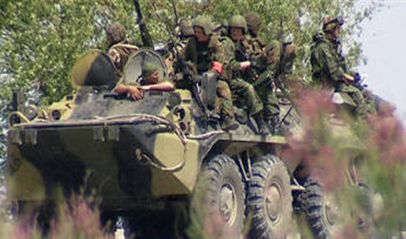 وتجمعت زوجات وأمهات بعض الجنود خارج البوابة قرب الجنود الروس الذين وقفوا وبنادقهم موجهة إلى الارض.