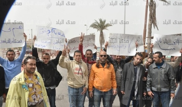 عمال المصرية للملاحة البحرية يواصلون التظاهر أمام القاعدة البحرية بالإسكندرية للتدخل لإنقاذ شركتهم من الإفلاس