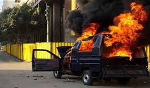 الإخوان يشعلون النيران بسيارتى شرطة بمحور 26 يوليو بالمولوتوف