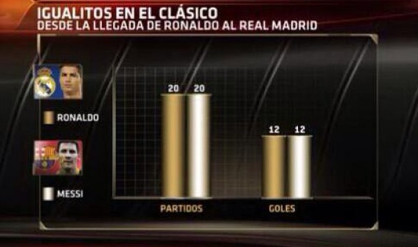 يذكر أن رونالدو سجل 12 هدفا في مرمى برشلونة بواقع 7 أهداف في مرمي فيكتور فالديز و5 أهداف في شباك بديله بينتو بينما يمتلك ميسي 18 هدفا في مرمى الريال متساويا مع مواطنه ألفريدو دي ستيفانو في حين نجح ميسي في صناعة 11 هدفا في مباريات الكلاسيكو.